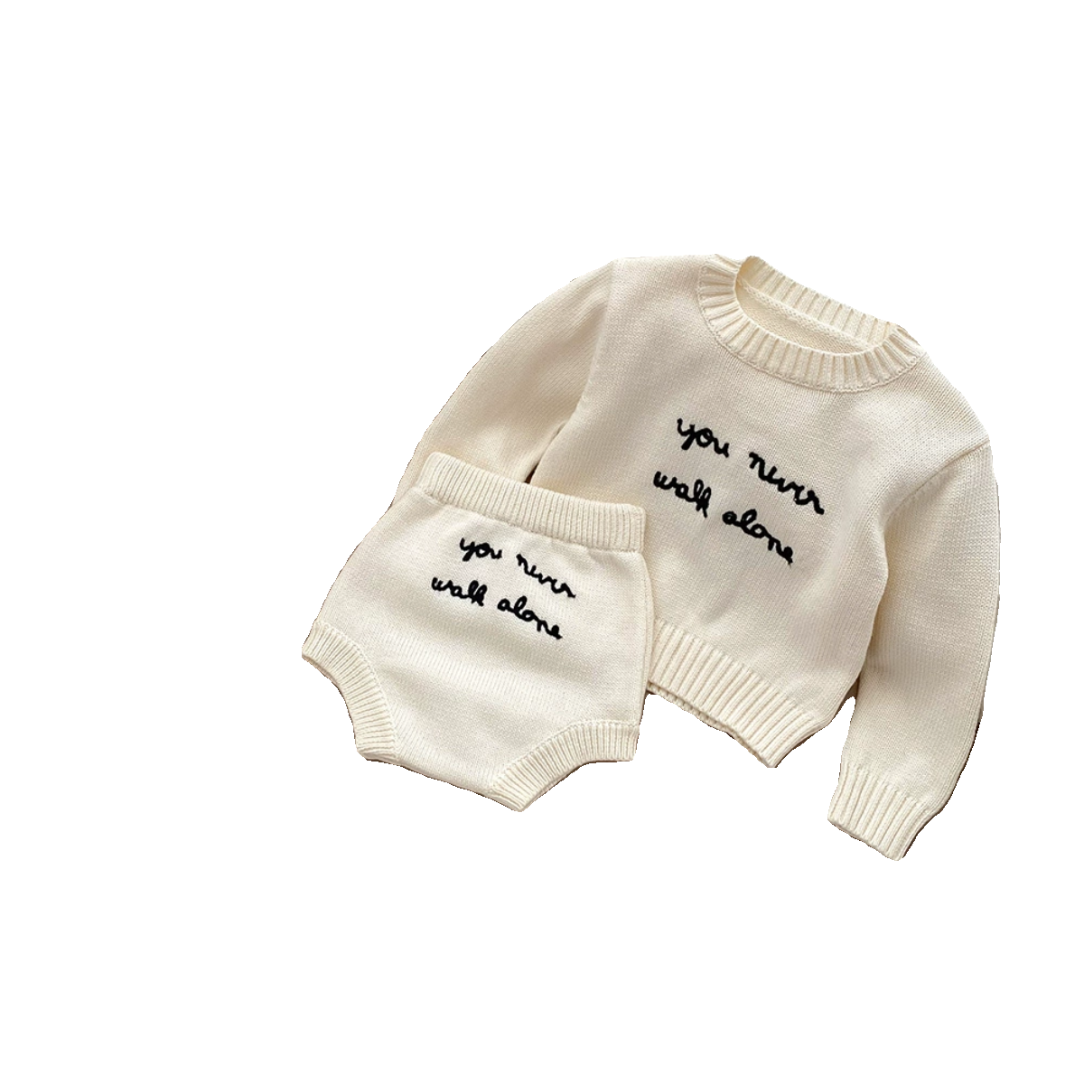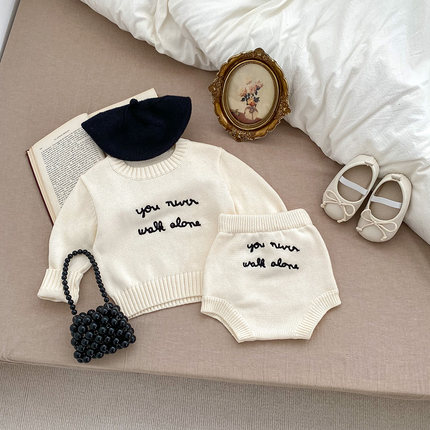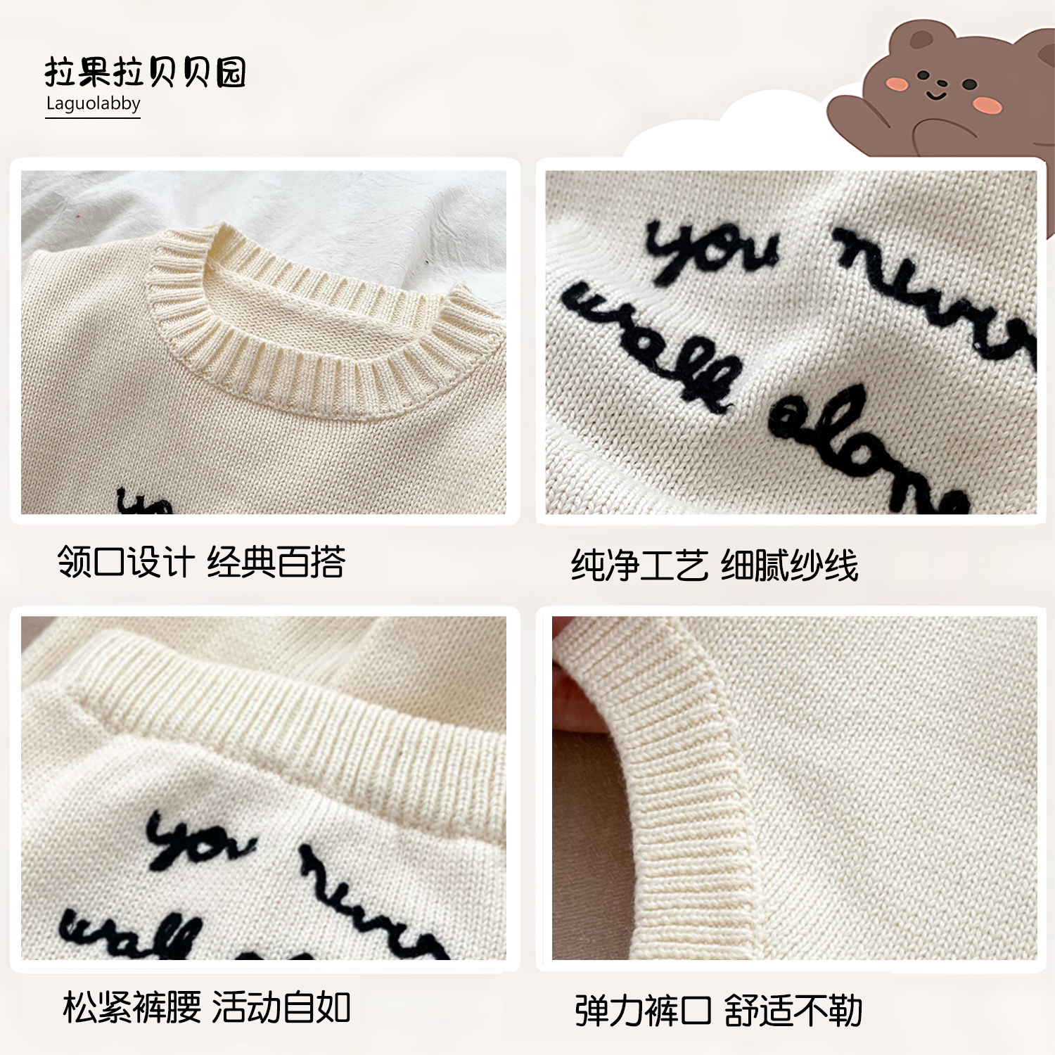 ins韩版女童秋装韩系男宝宝衣服针织衫毛衣上衣+裤子秋冬加绒套装