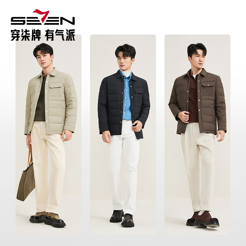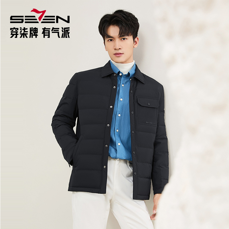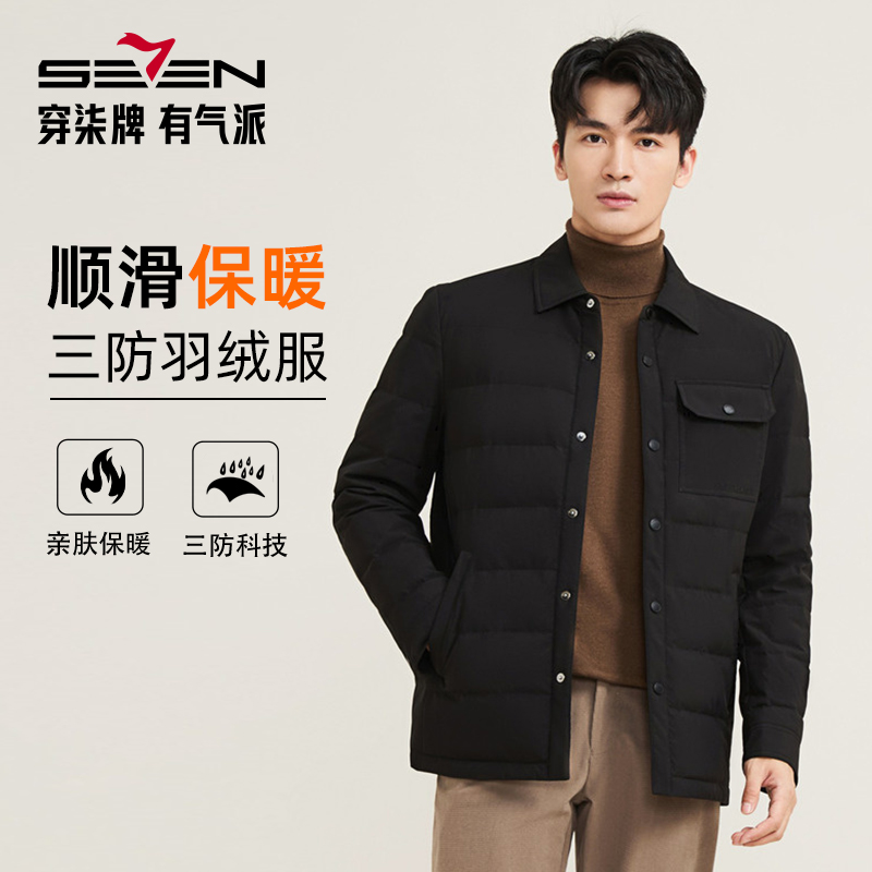 【衬衫羽绒夹克】柒牌羽绒服男冬季新款三防面料商务休闲羽绒外套