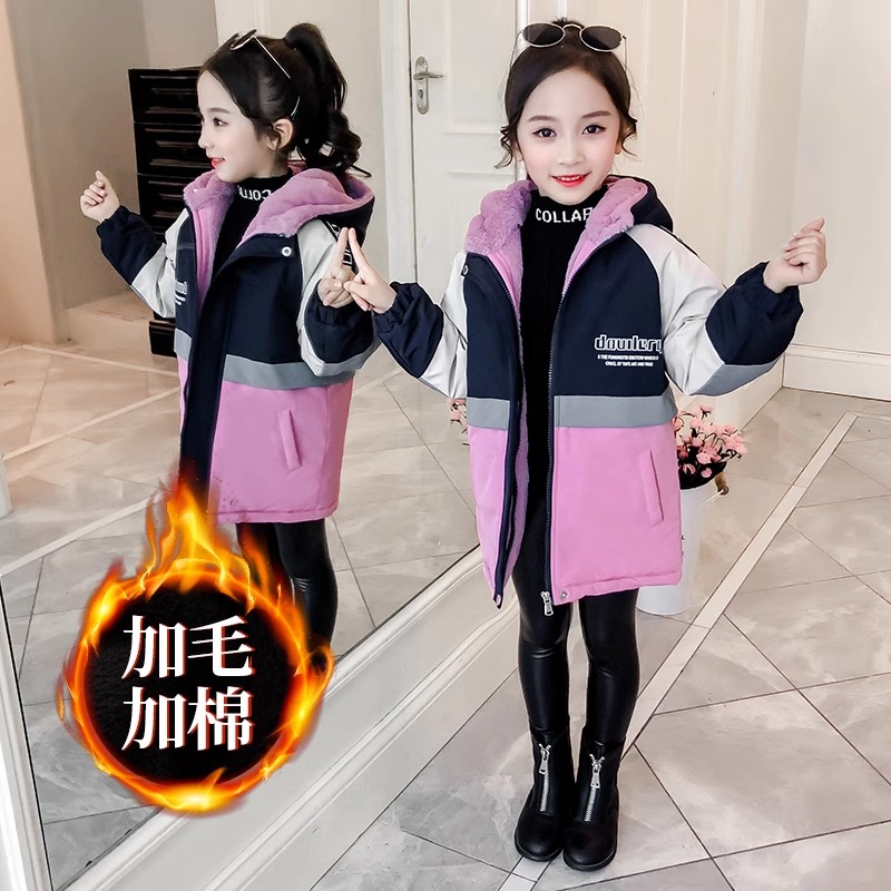 女童派克服女宝加绒夹棉棉衣2021新款小童洋气冬装婴儿童棉服外套