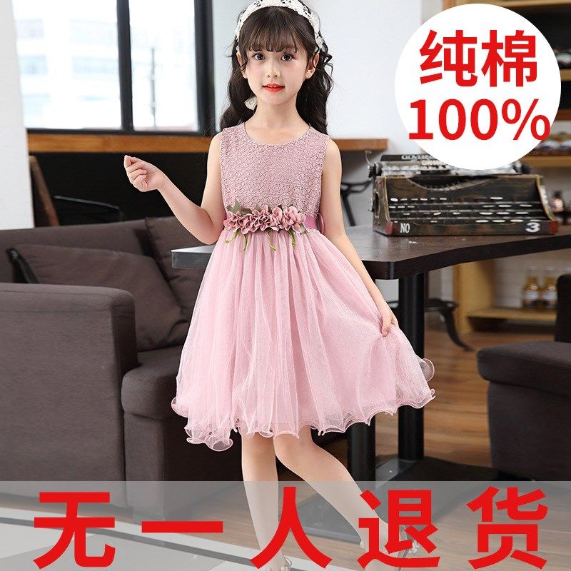 童装女童夏装2018新款公主裙夏季无袖女中童纯棉女孩连衣裙子