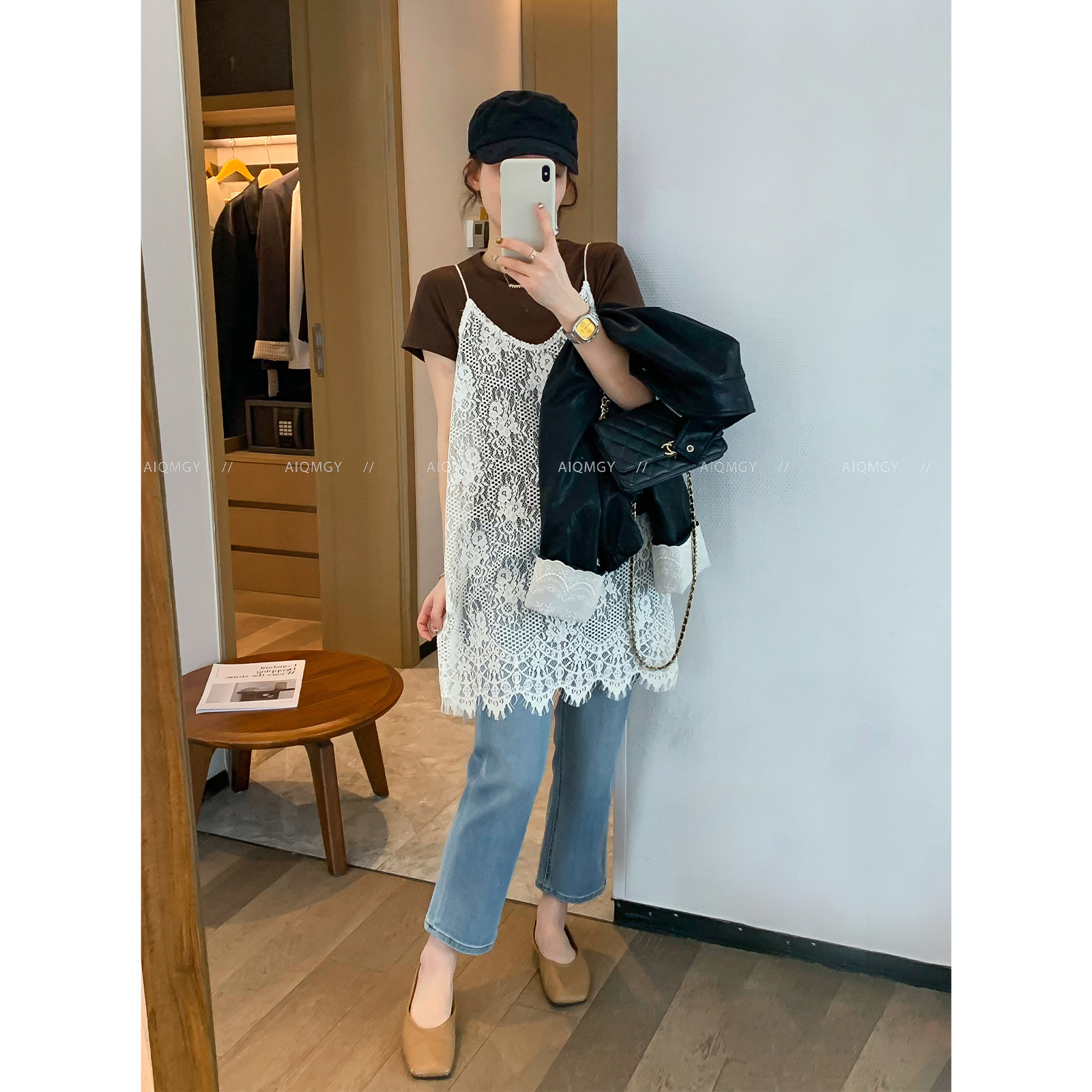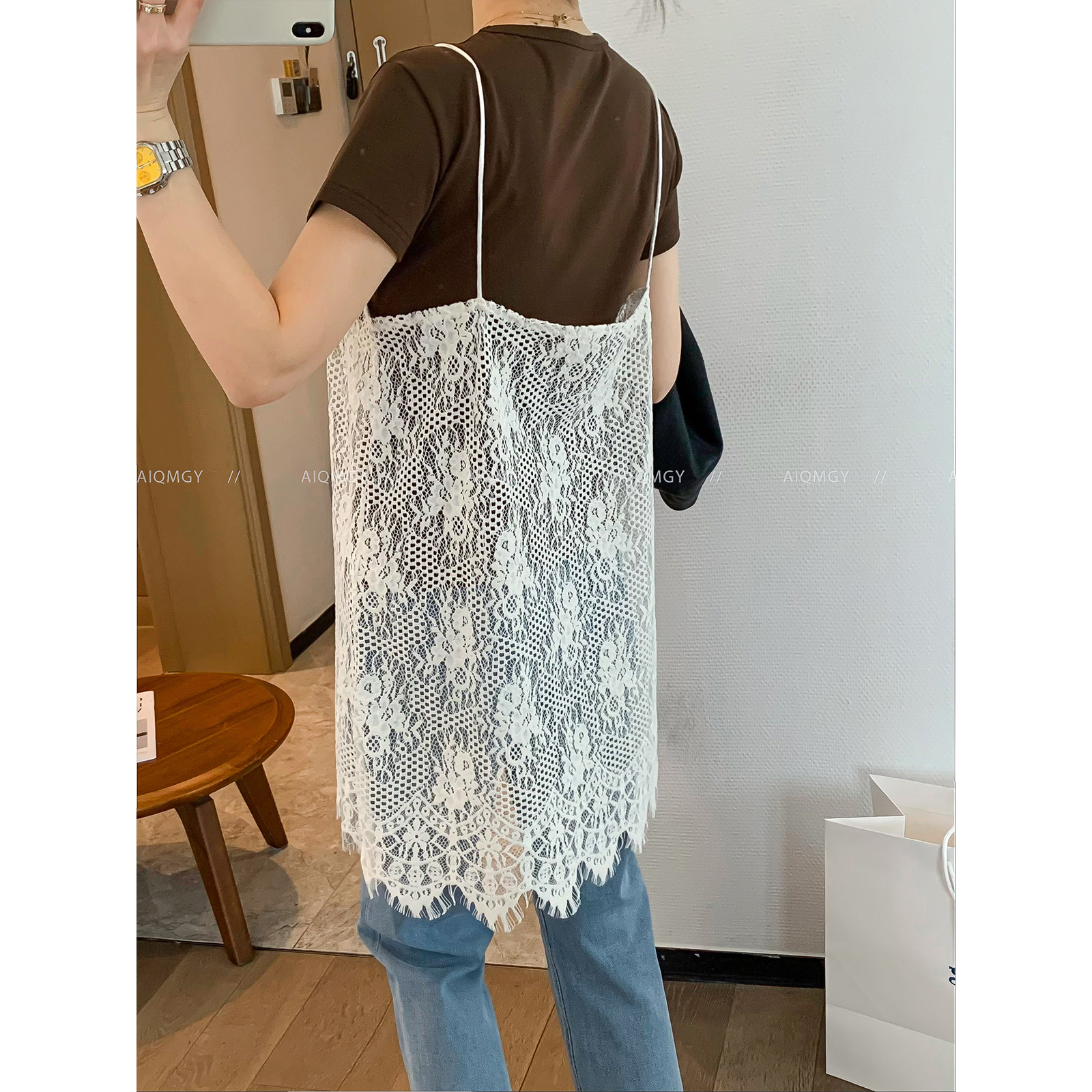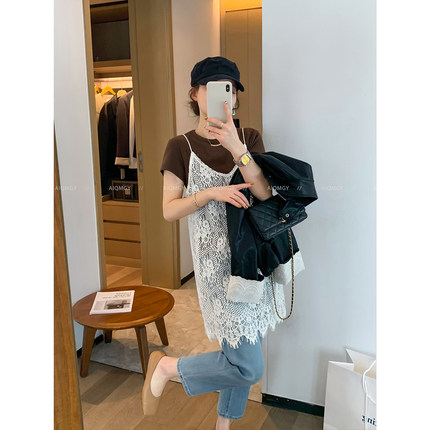 爱情魔鬼鱼 白色无袖蕾丝吊带连衣裙女2026春季新款外穿叠穿短裙