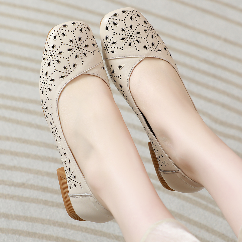 凉鞋妈妈款真皮洞洞鞋2025新款春夏季中老年平底浅口软底镂空女鞋