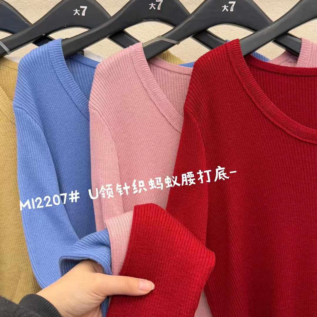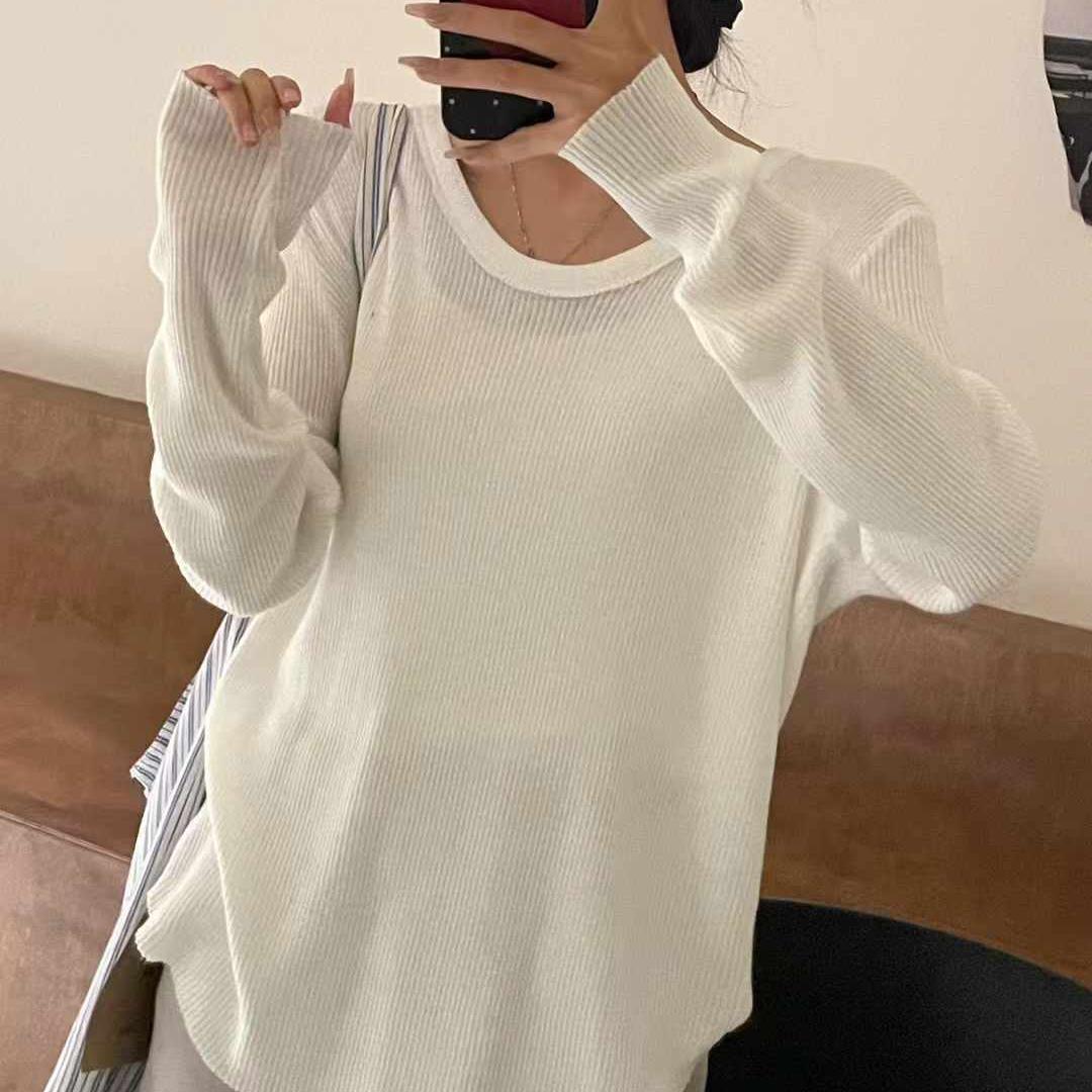 胖mm休闲慵懒风显瘦U领针织上衣