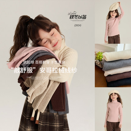 女童纯色高领毛衣儿童冬季加厚保暖上衣宝宝软糯高弹针织打底衫潮
