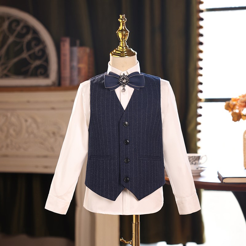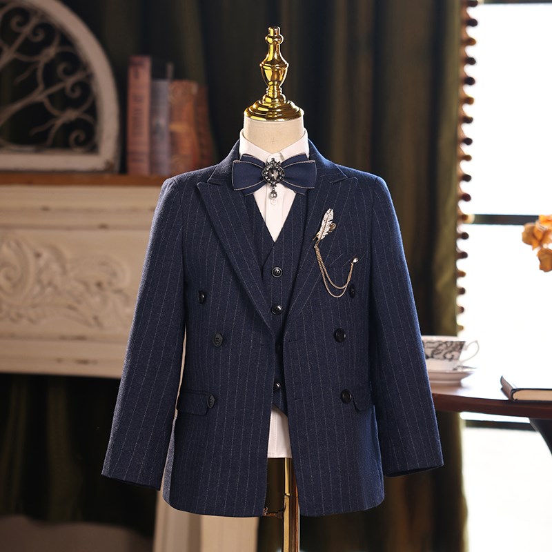 儿童西装套装2024新款男童花童礼服生日宴条纹小主持人钢琴演出服