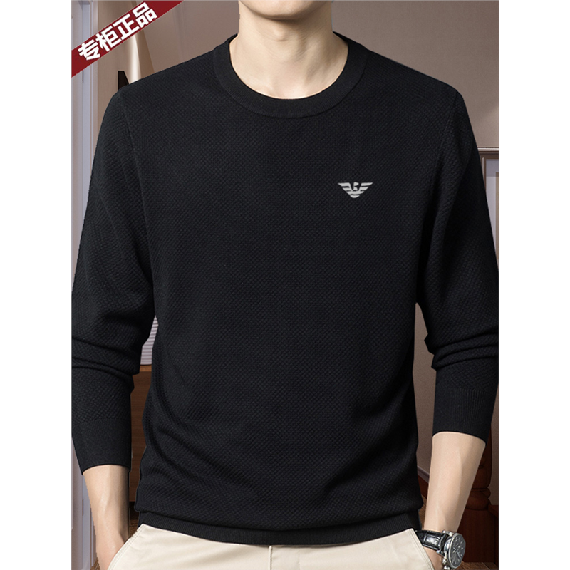 正品奢华大牌春秋季羊毛衫男士休闲圆领针织毛衣中青年修身打底衫