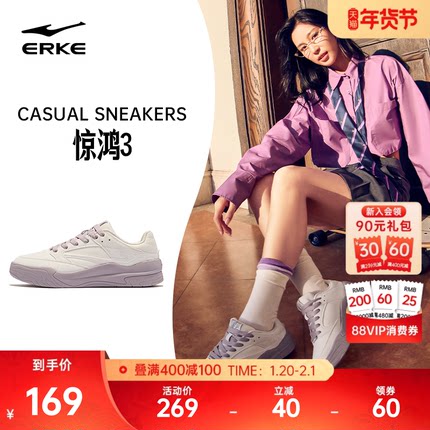 惊鸿3鸿星尔克板鞋女鞋冬季新款厚底轻便休闲鞋增高女生运动鞋子