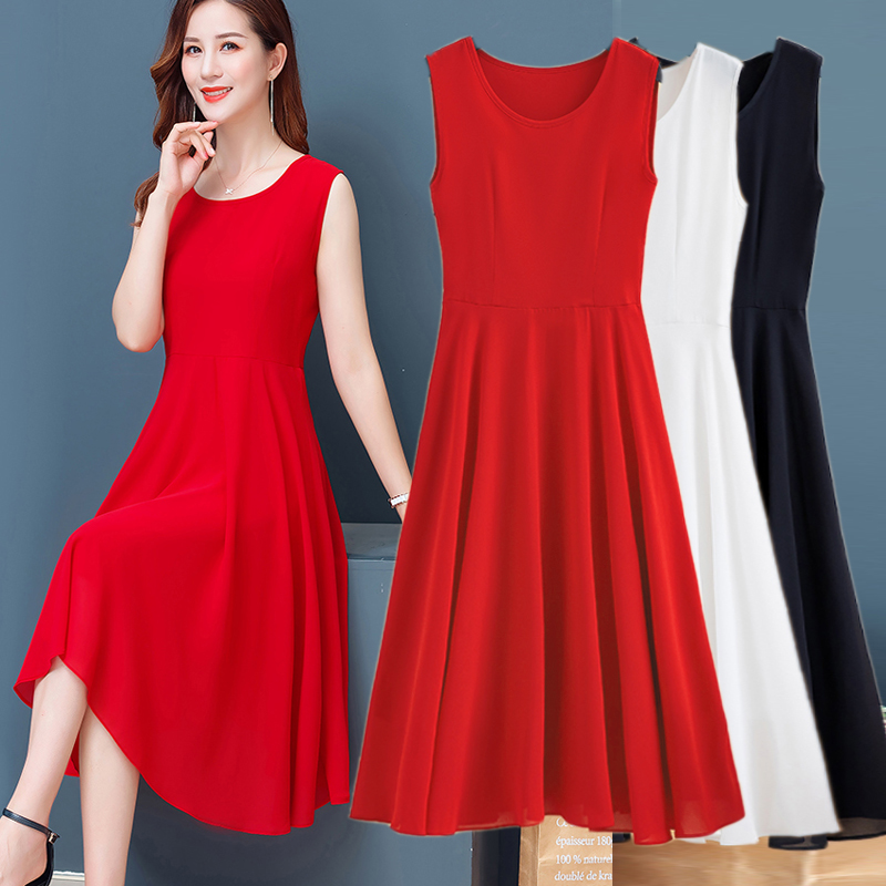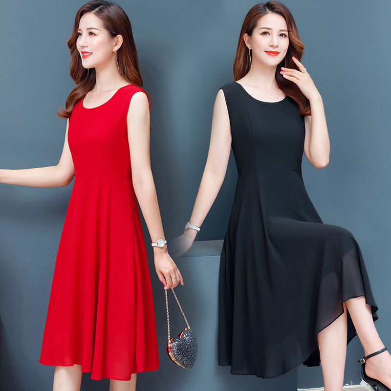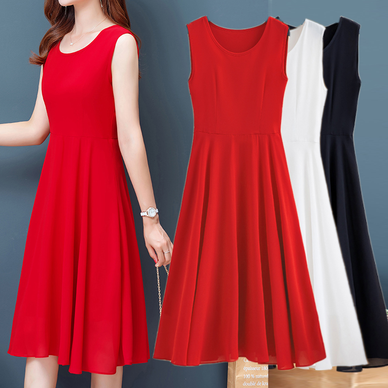 加大码背心连衣裙雪纺吊带长裙子