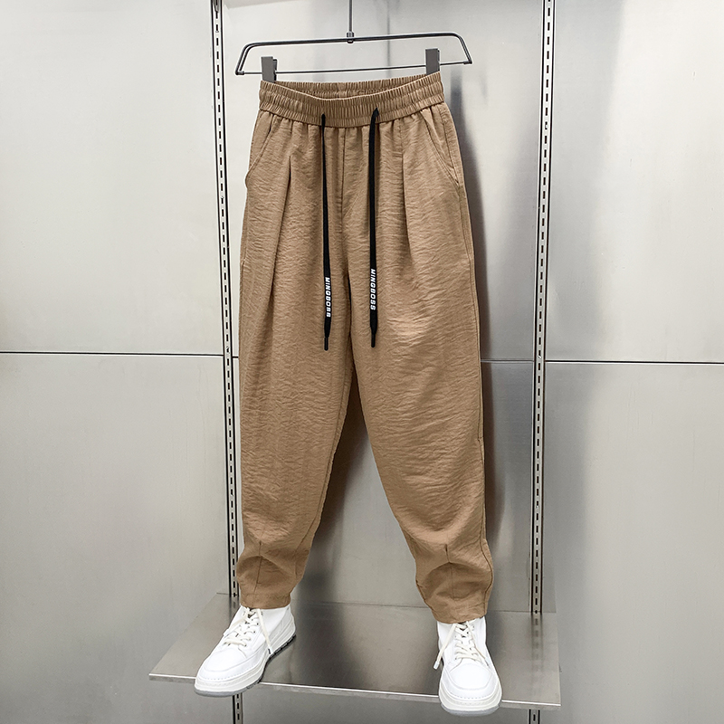 2025夏季新款棉麻超薄透气垂感休闲裤男士潮流春秋褶皱哈伦萝卜裤