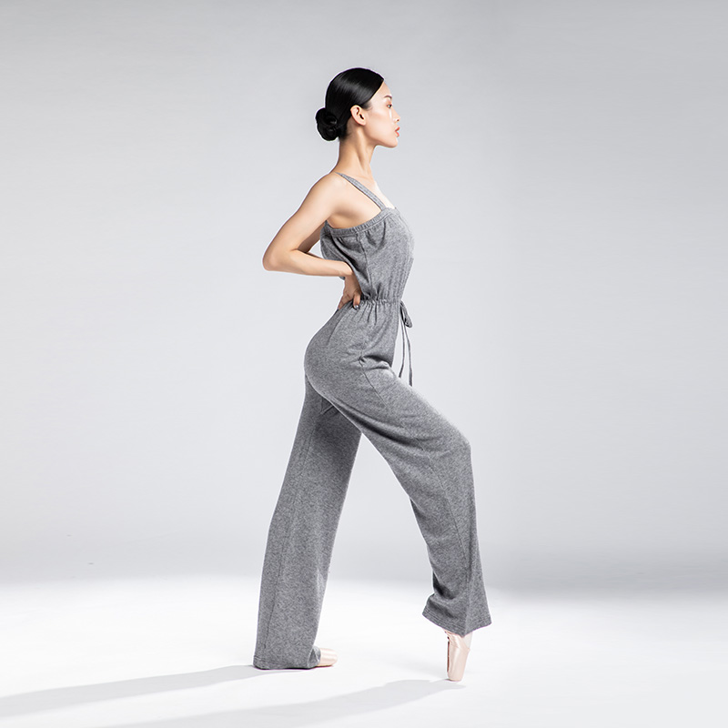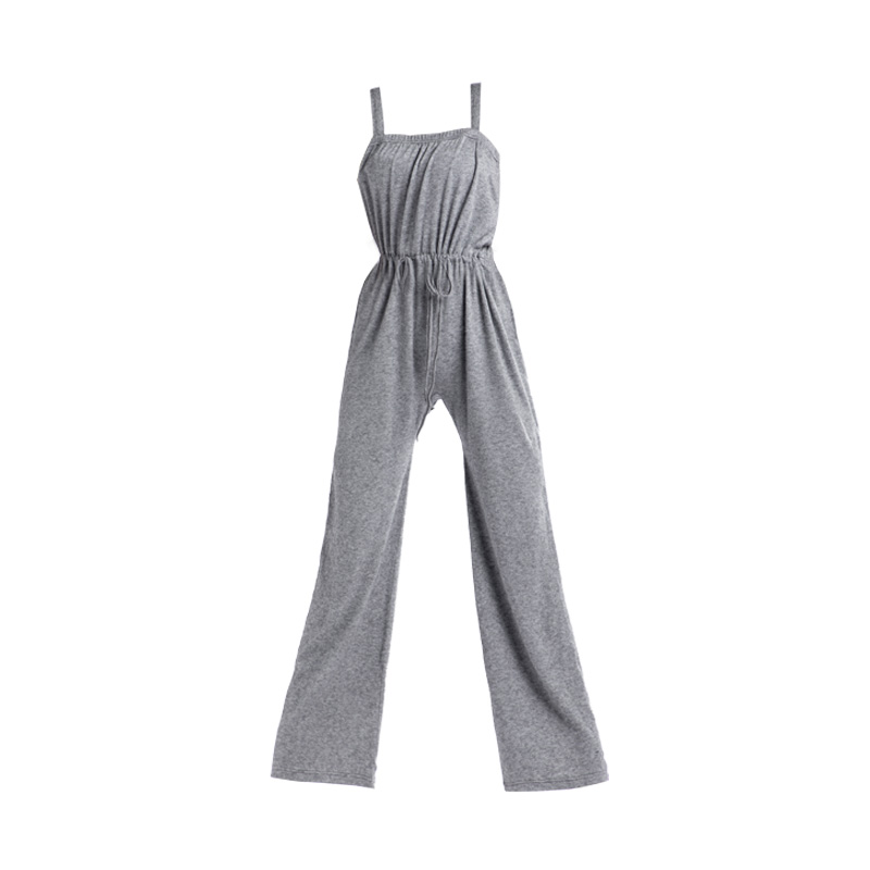 丹诗戈吊带连体裤舞蹈裤灰色收腰直筒阔腿长裤弹力高腰裤气质女