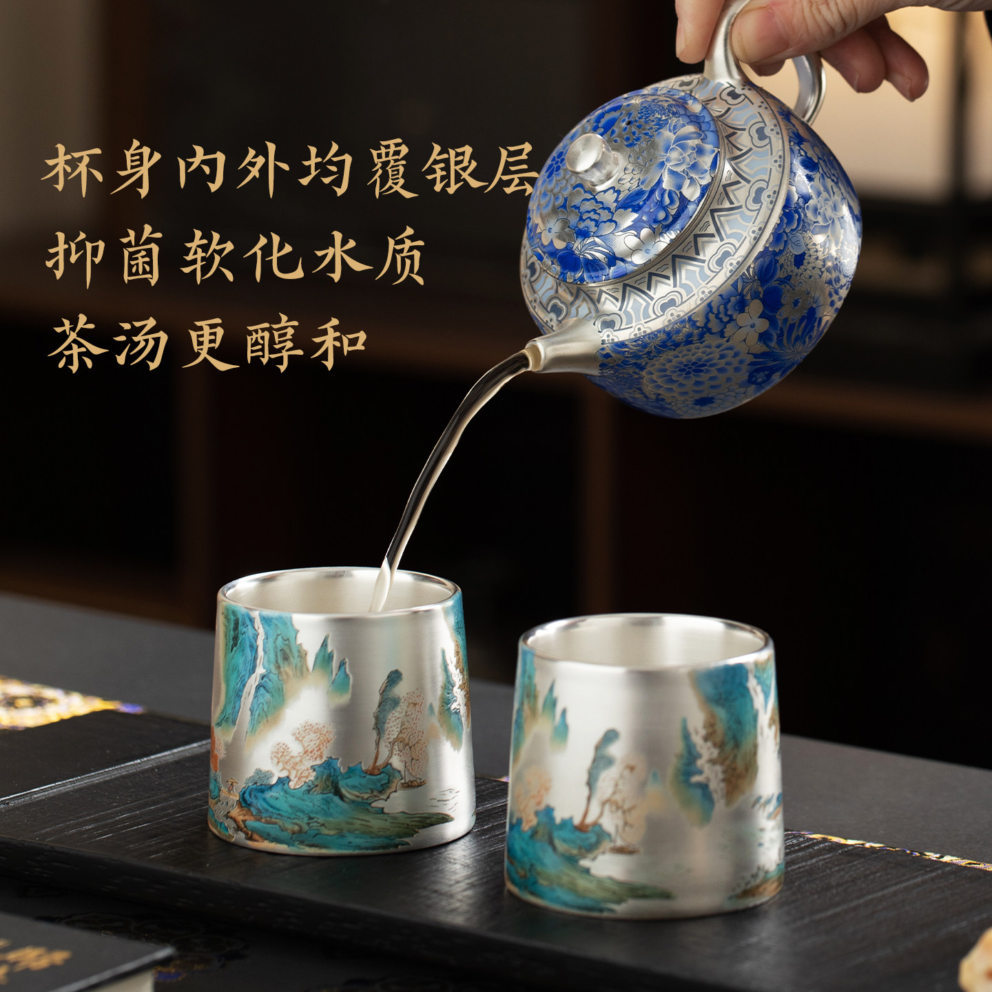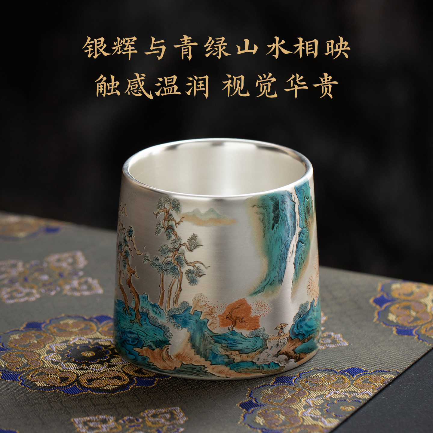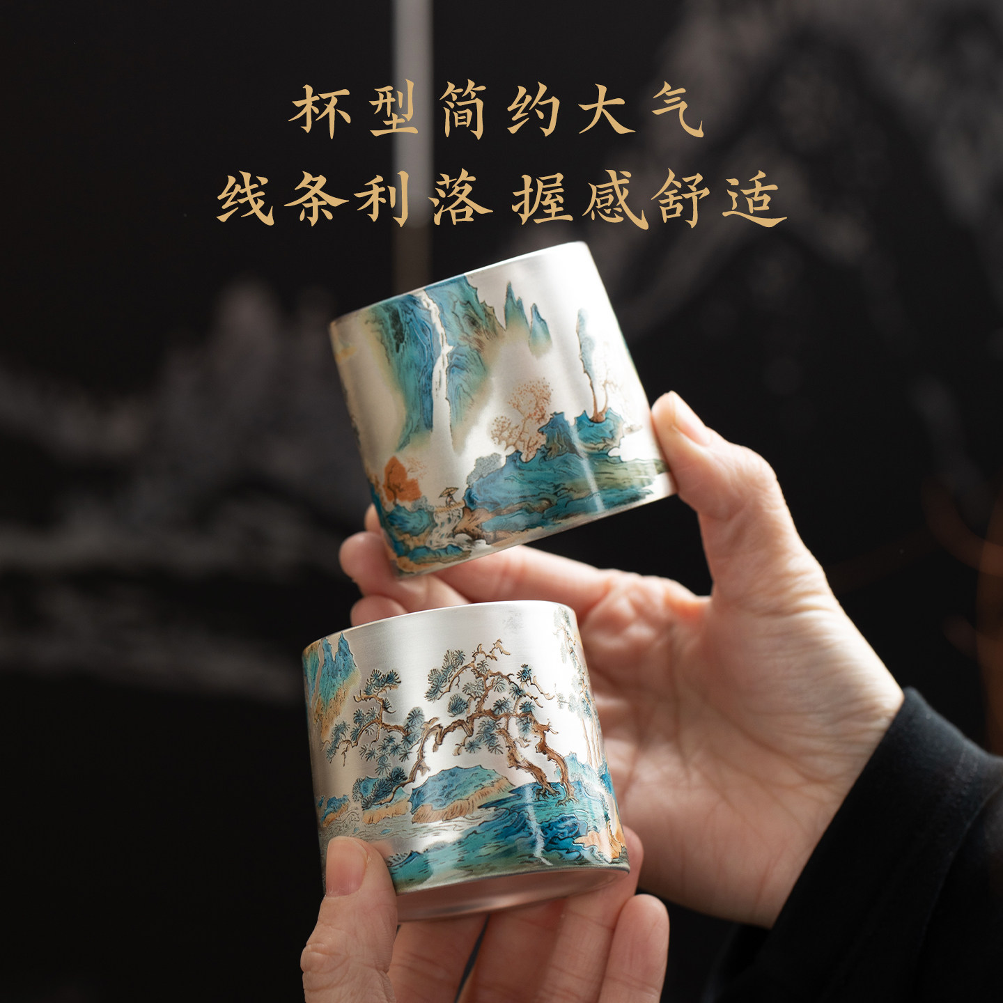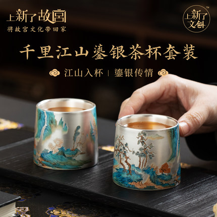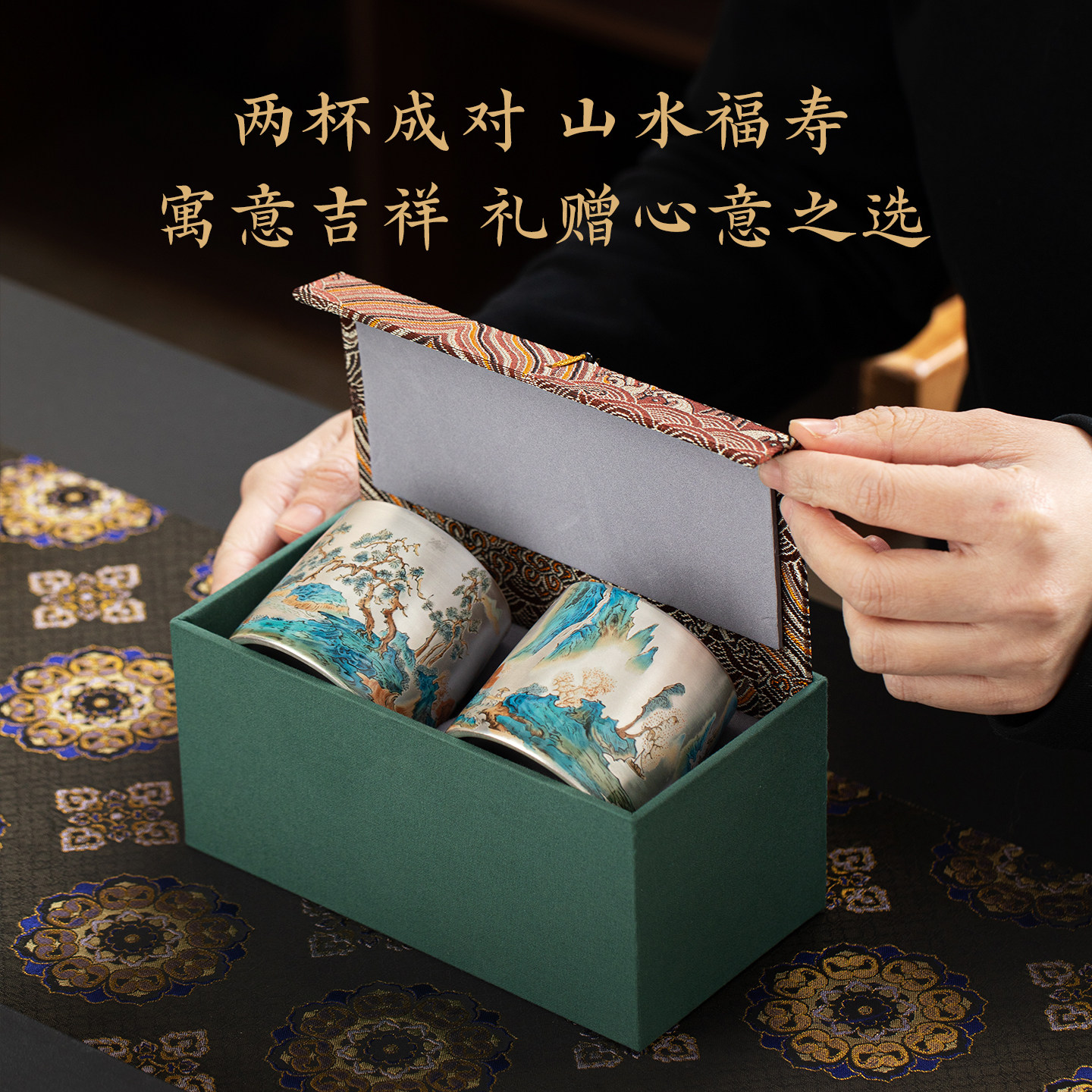 上新了故宫千里江山鎏银茶杯主人杯陶瓷对杯爸爸乔迁新年生日礼物