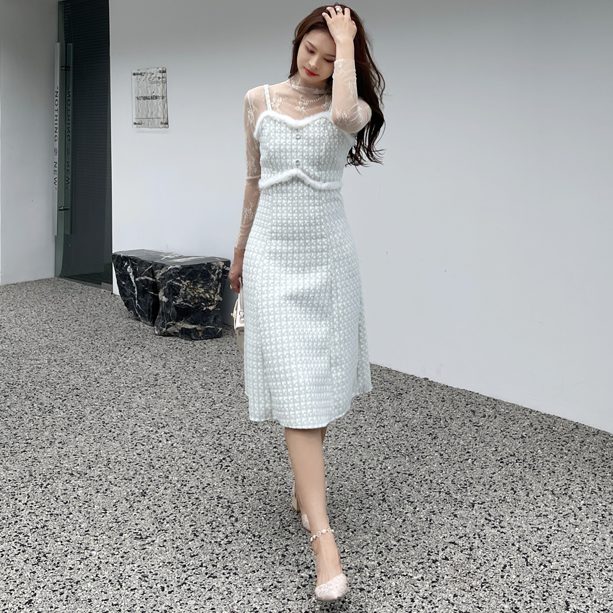蕾丝打底衫小香风两件套装名媛温柔风吊带连衣裙子女秋冬内搭新款