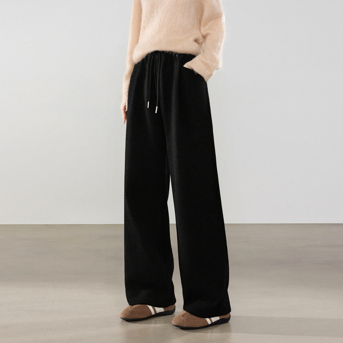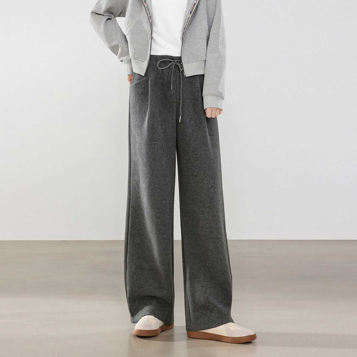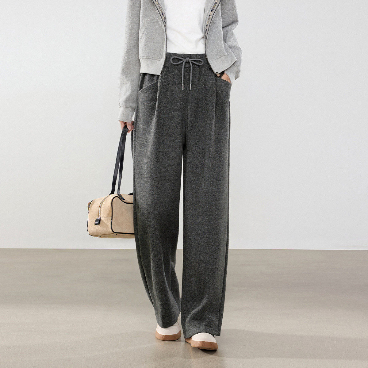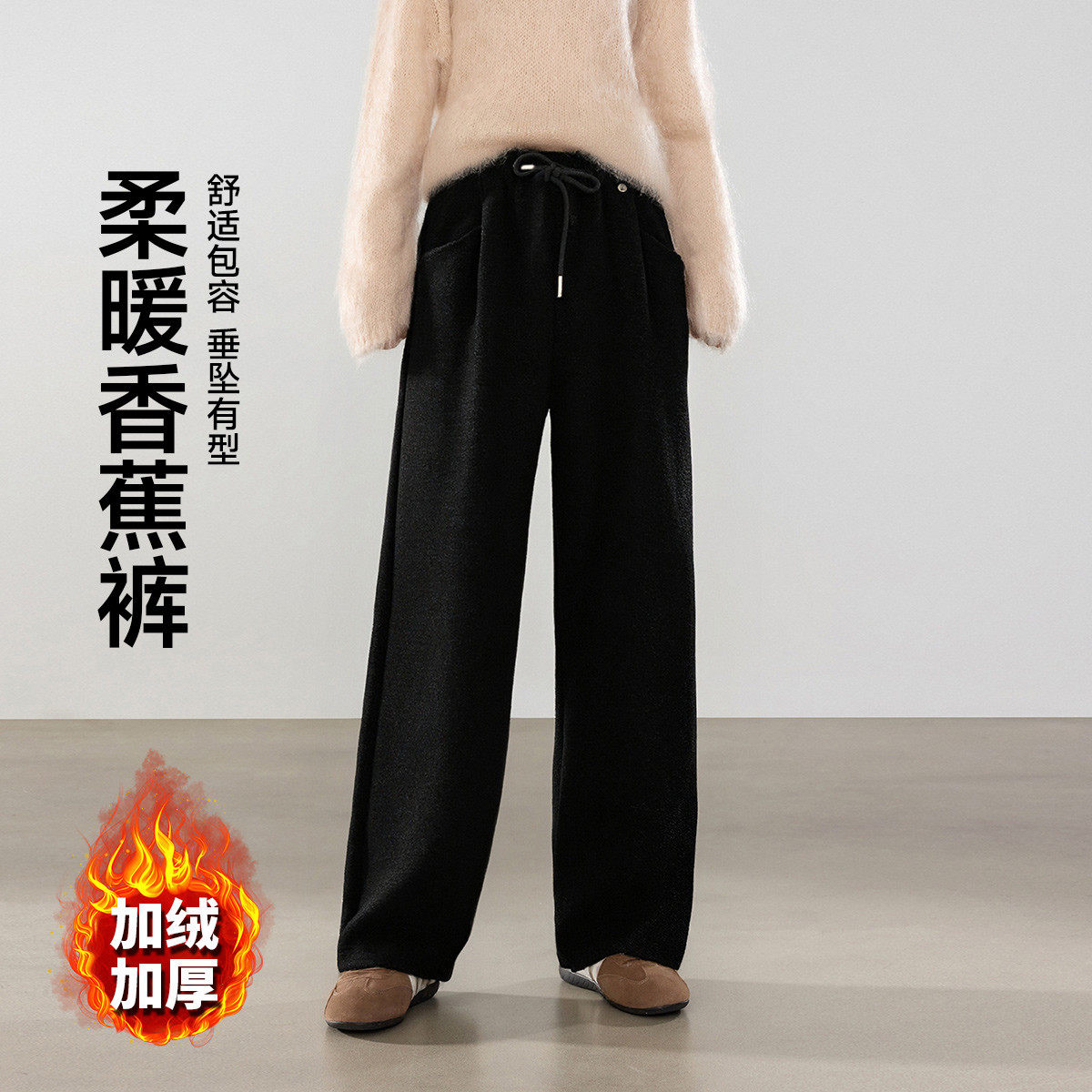 茵曼2025冬季新款加绒加厚休闲裤女宽松显瘦九分直筒垂感高腰香蕉