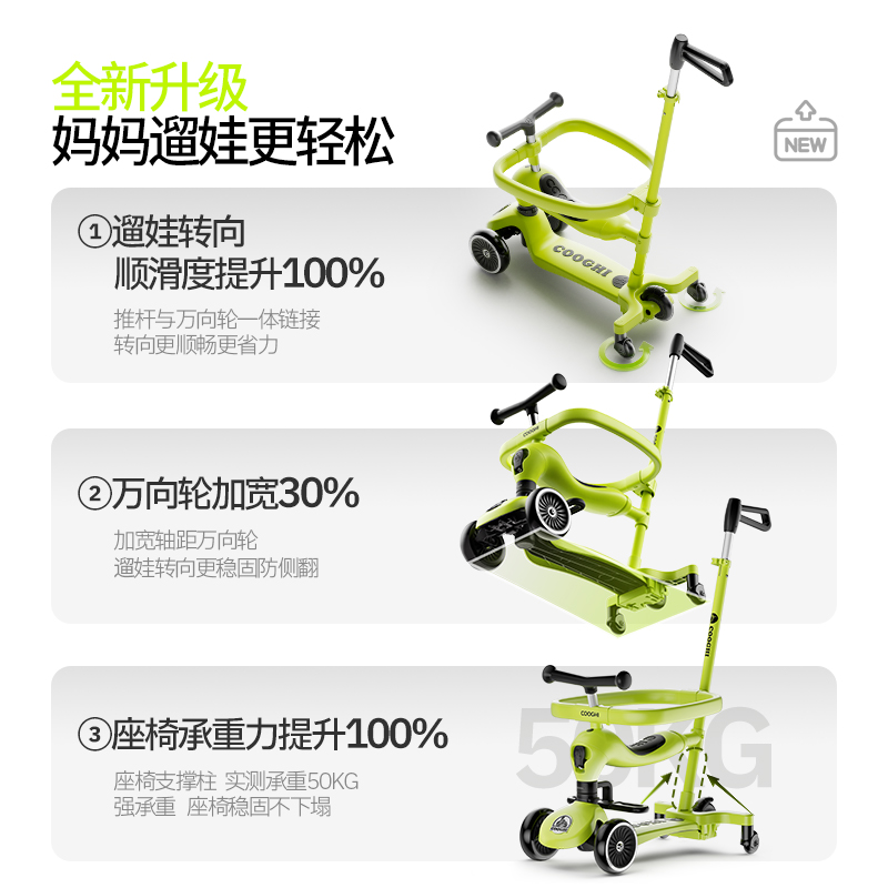 【下拉领优惠】酷骑儿童滑板车1到3岁宝宝六合一学步遛娃神器酷奇