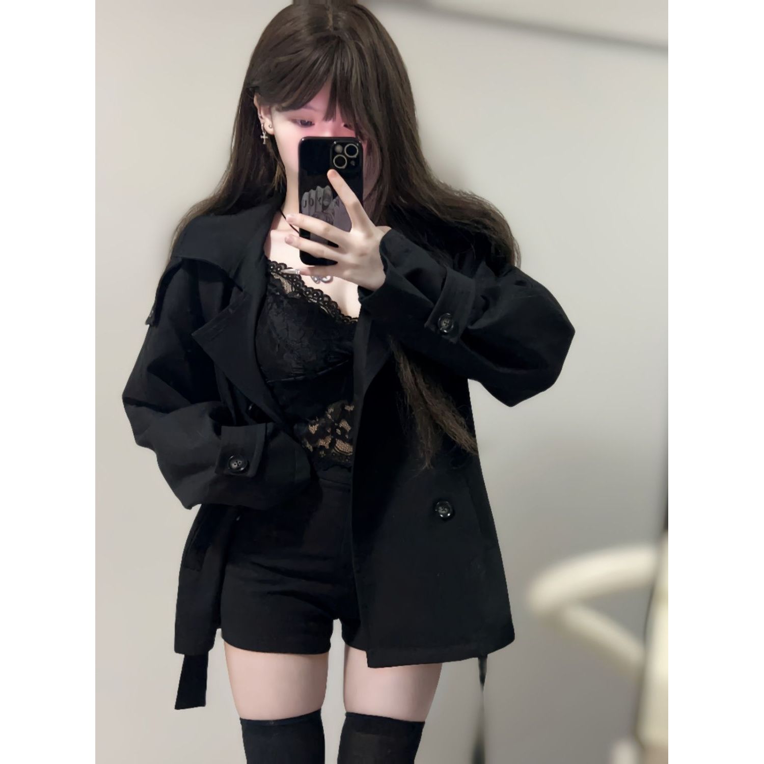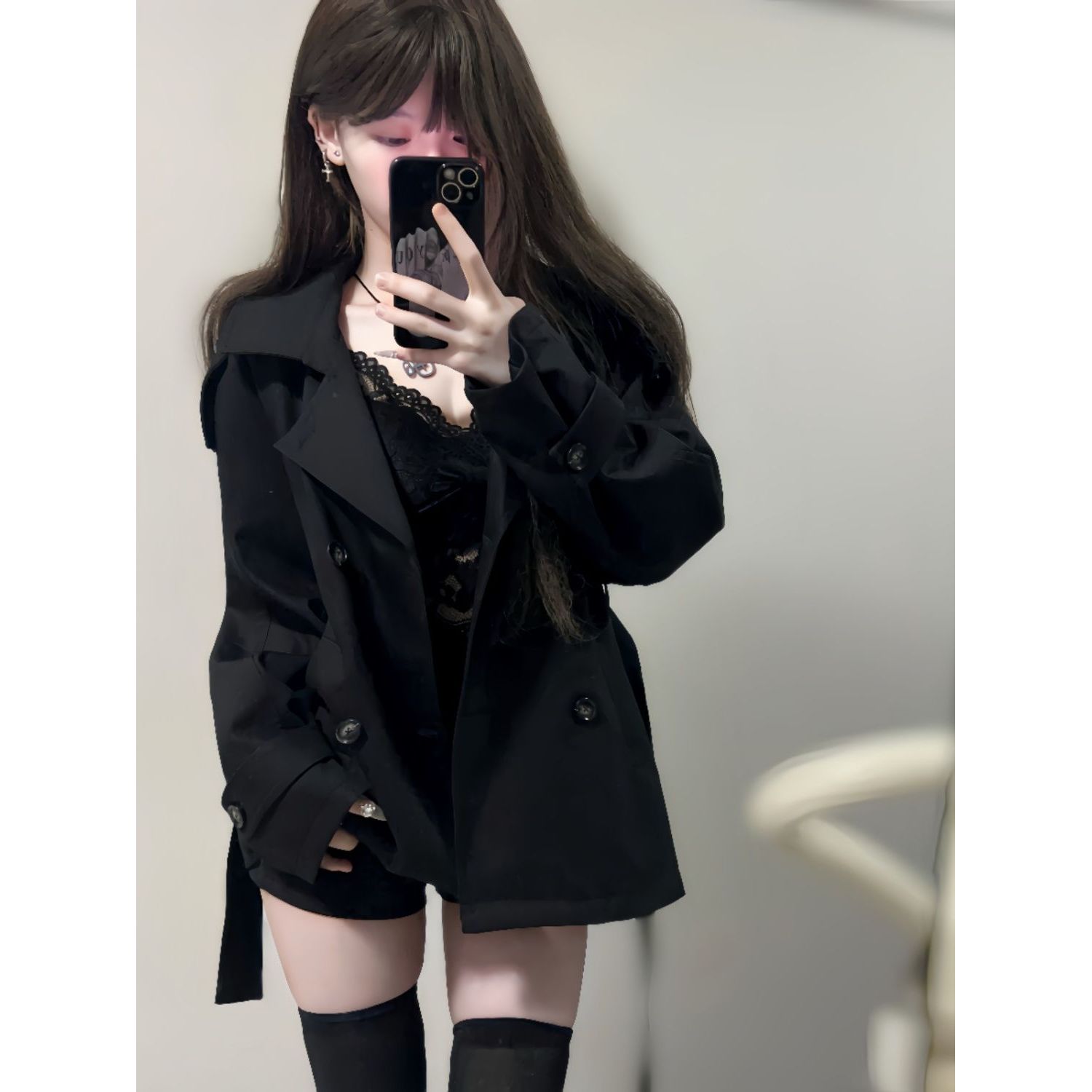 纯欲风复古双排扣风衣女春秋新款小个子高级感黑色收腰短款外套