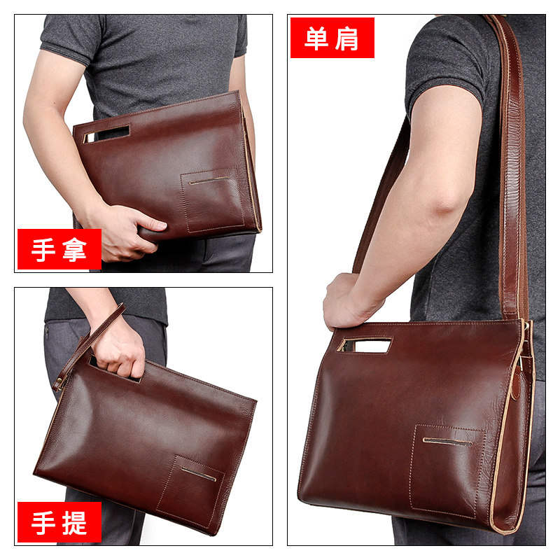 古牛王男士手拿包手提真皮大容量包包商务单肩斜跨包男休闲公文包