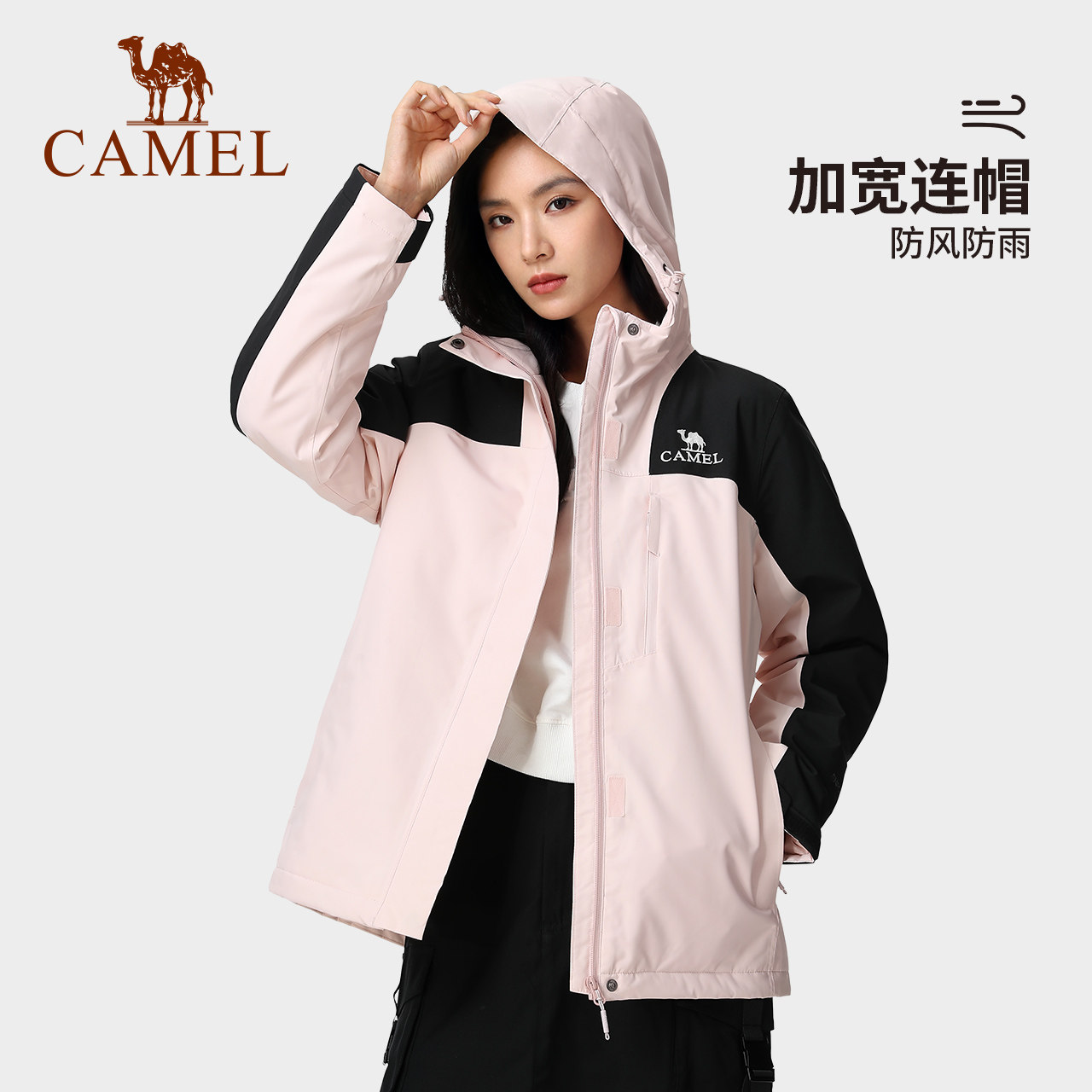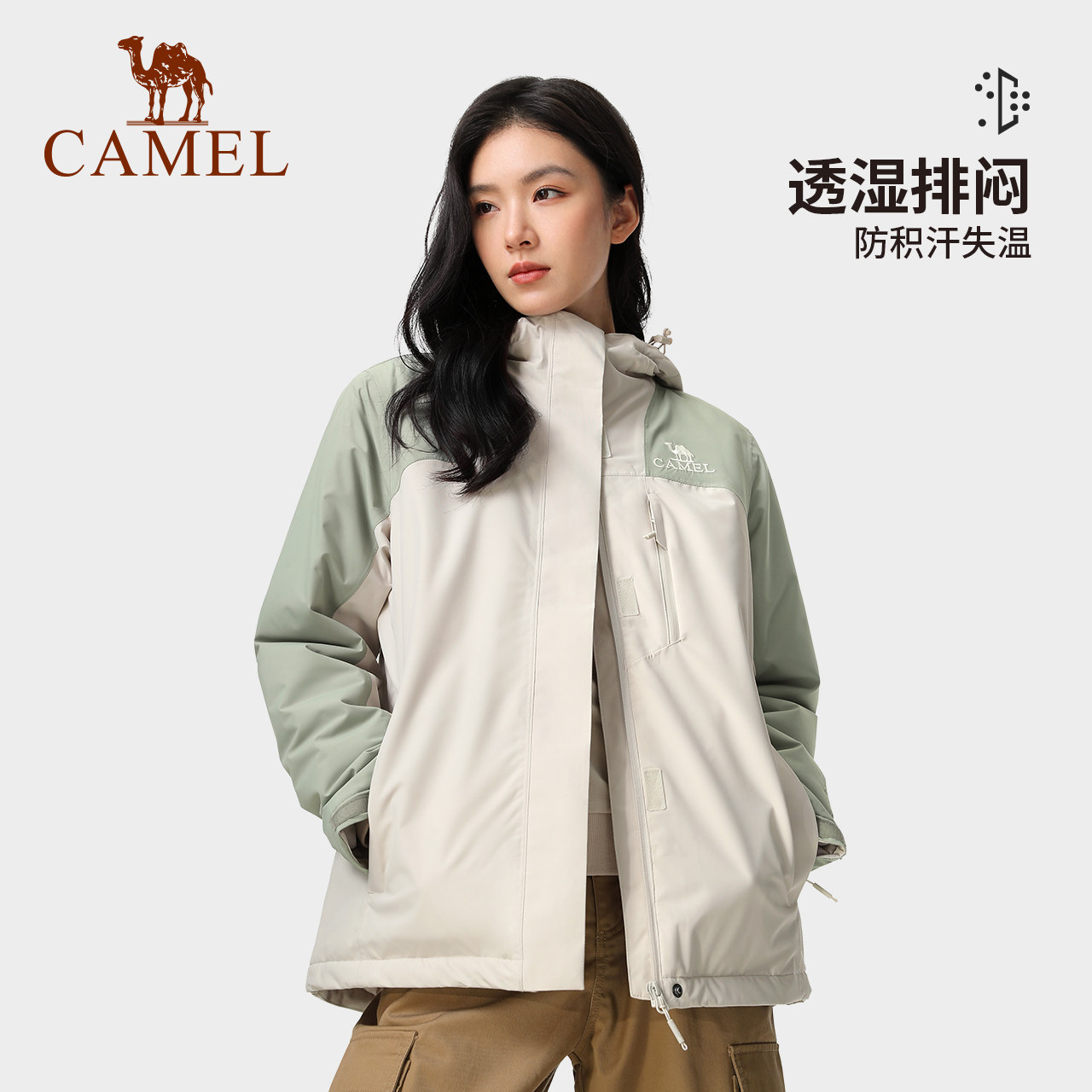 骆驼拼色夹棉冲锋衣男女情侣同款棉服外套防水户外旅游夹克登山服