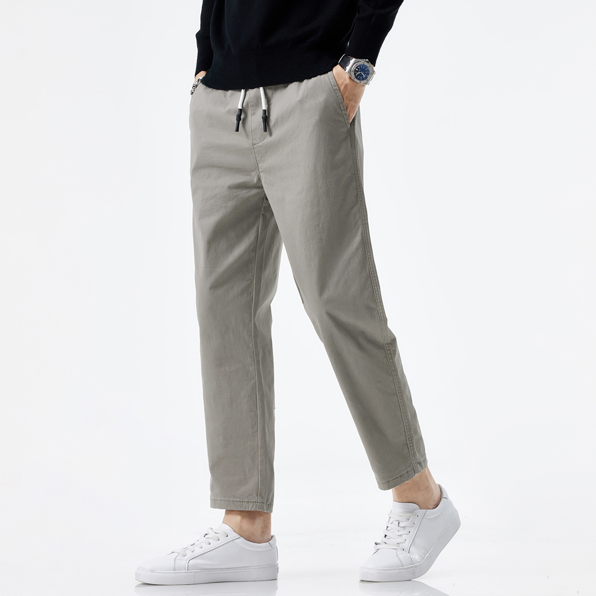2025新款灰色直筒裤子男款夏季薄款休闲运动裤工装纯棉宽松九分裤