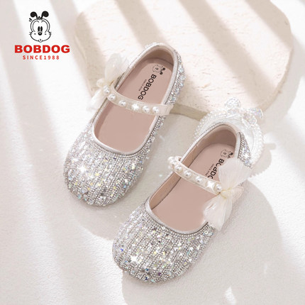 巴布豆真皮女童公主鞋闪亮儿童小皮鞋2026新款水晶鞋女宝艾莎鞋子