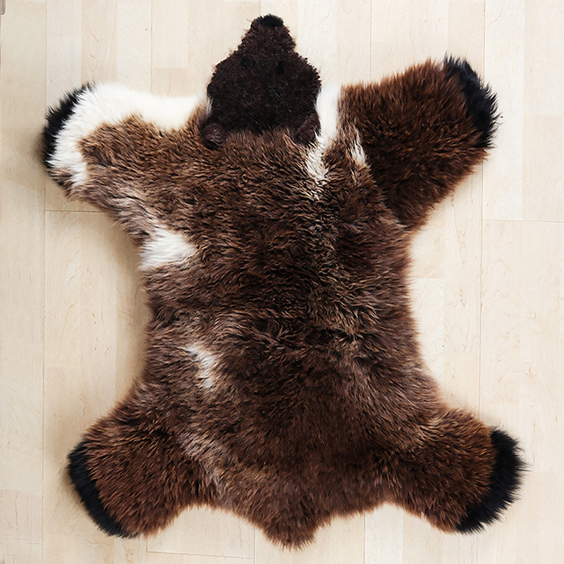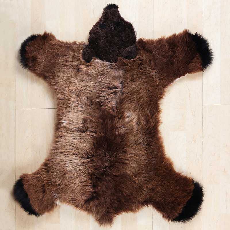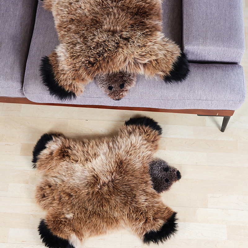 澳世家 羊毛熊坐垫孤品动物毛绒自然花色皮毛一体客厅欧式地毯