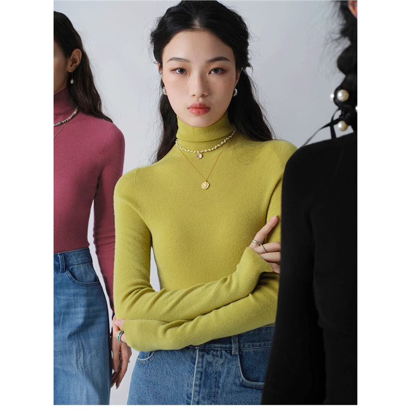 岛精无缝一体羊毛衫女2025秋冬新款高领打底衫弹力修身内搭上衣潮