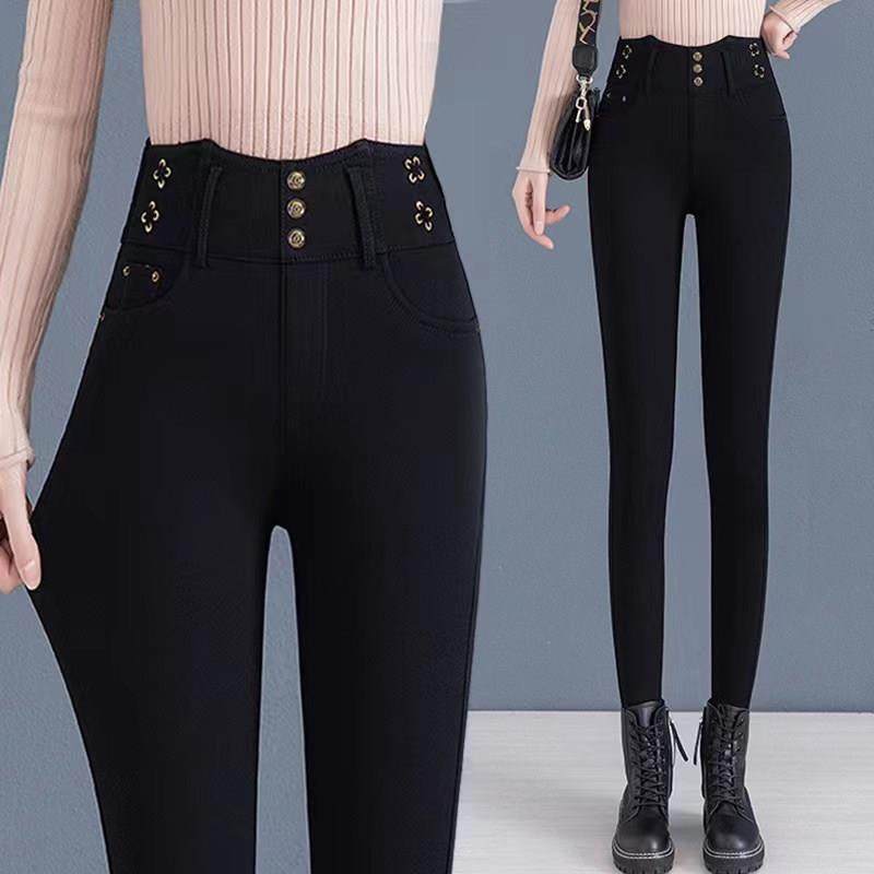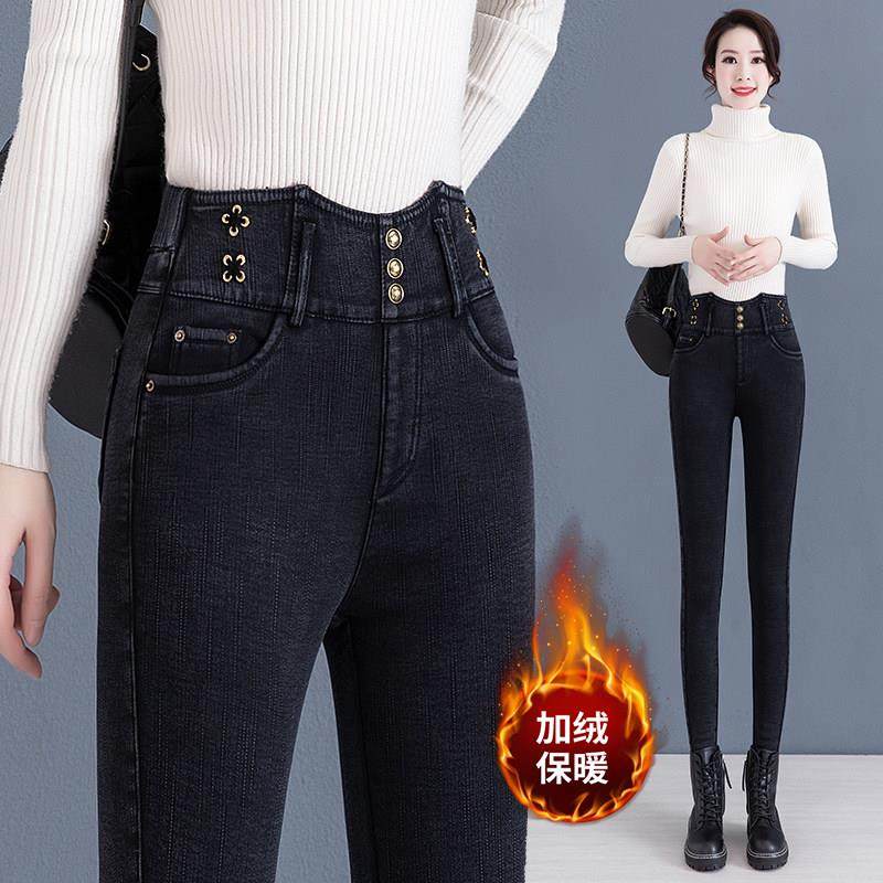 高档秋冬神裤牛仔裤女铅笔小脚打底裤高腰外穿显瘦加绒厚紧身长裤