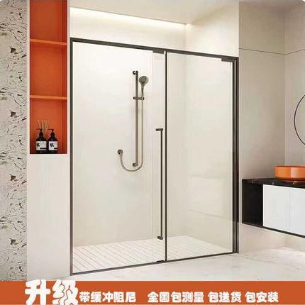 常州定制极窄不锈钢淋浴房移门下沉式一字型浴室玻璃隔断一固一移