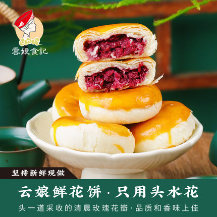 云娘食记 云南特产鲜花饼300g 正宗新鲜玫瑰花馅月饼糕点茶点礼盒