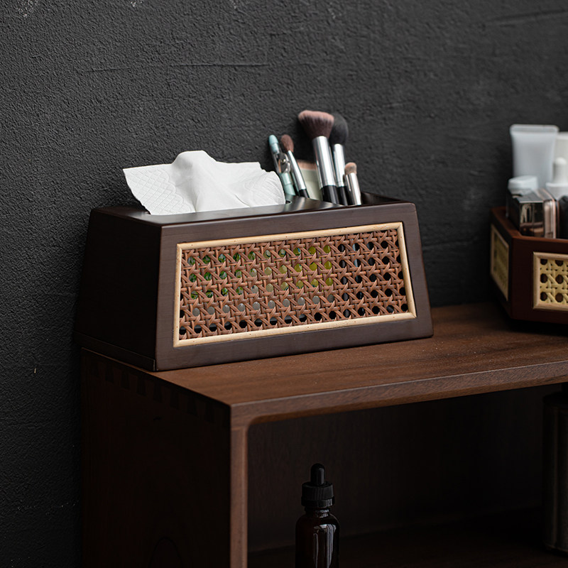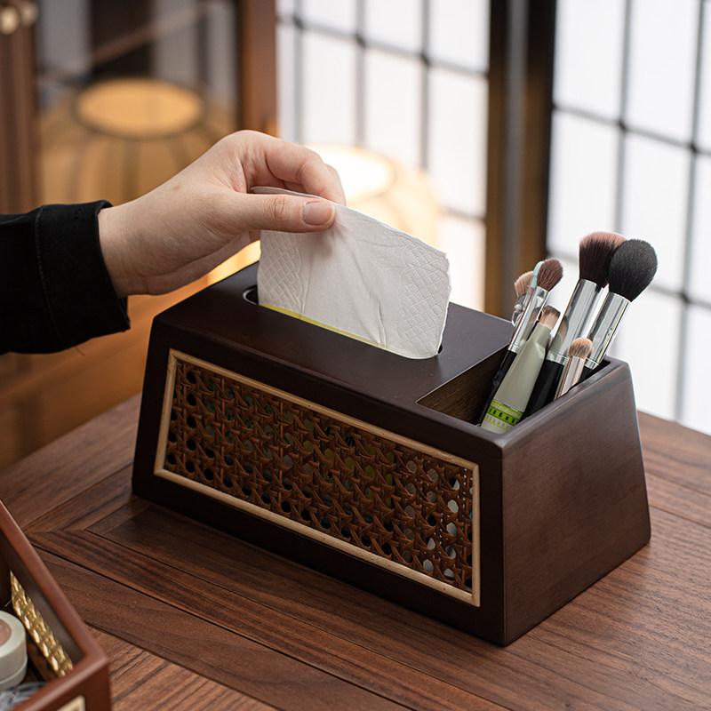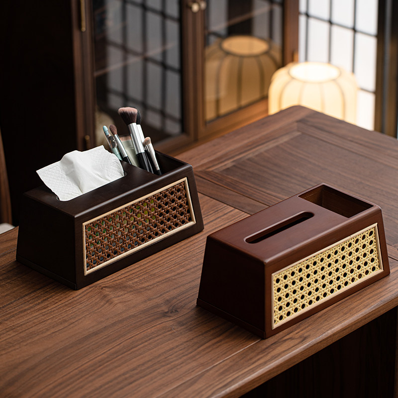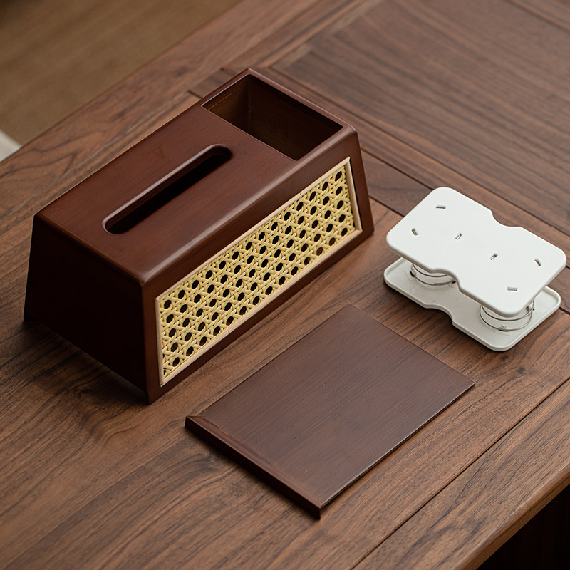 晟窑家用竹制仿藤编纸巾盒客厅餐厅桌面抽纸盒多功能遥控器收纳盒