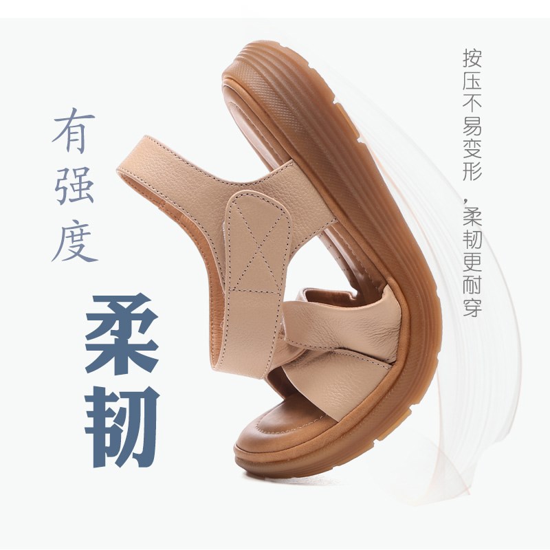 真皮软底妈妈凉鞋夏季平底舒适休闲沙滩鞋中年大码防滑牛筋底女鞋