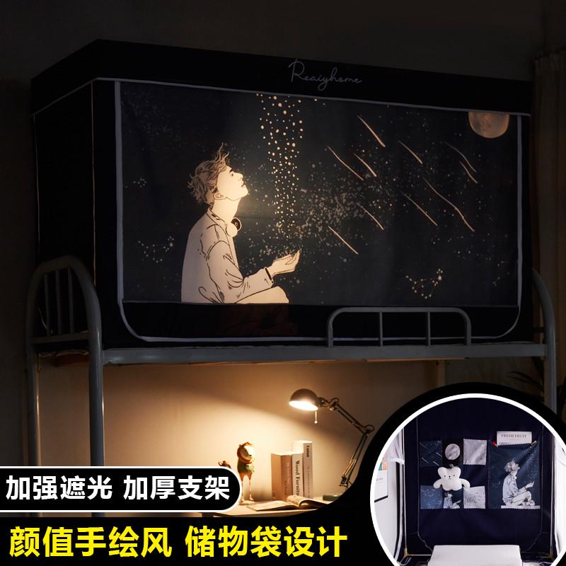 口袋款学生宿舍床帘蚊帐支架一体式寝室单人上铺下铺窗帘遮光床幔