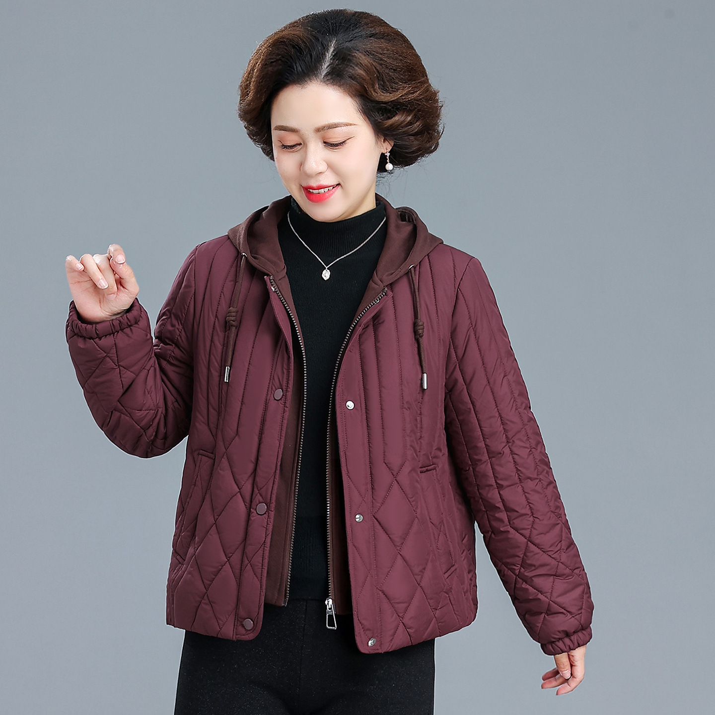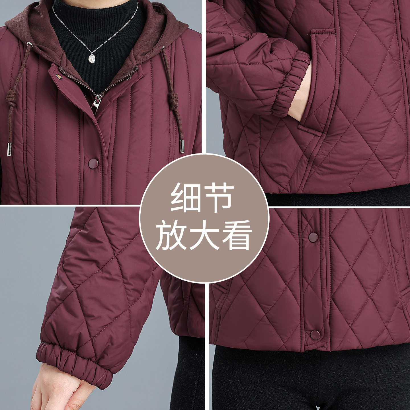 中老年女装羽绒棉服秋冬新款2025连帽菱格短款轻薄小棉袄外套棉袄