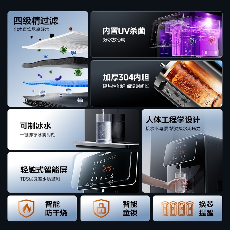 奥克斯净水器家用RO超滤直饮加热热净饮水机一体商用立式办公室冰