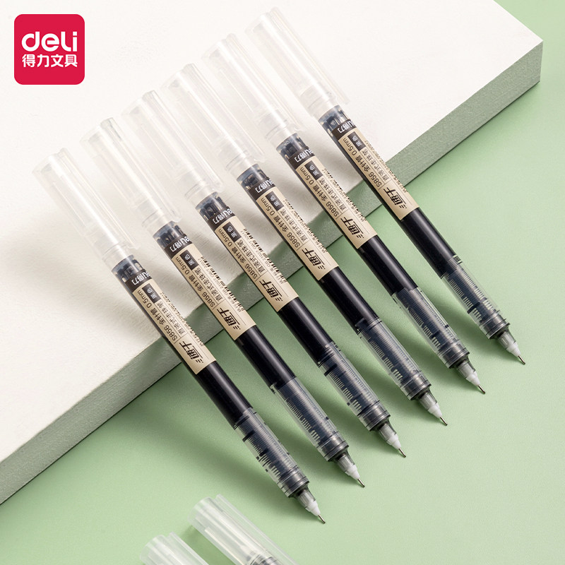 得力直液式走珠笔速干笔签字笔学生用高颜值中性笔水性直液笔0.5做笔记专用手账碳素针管头签字笔S856