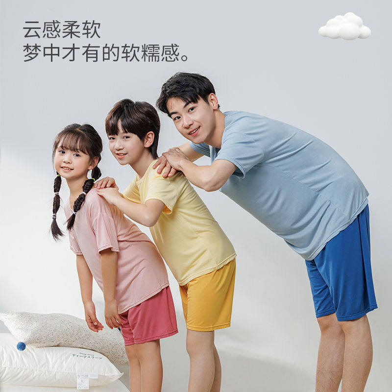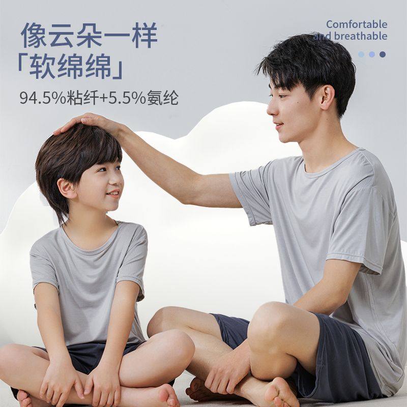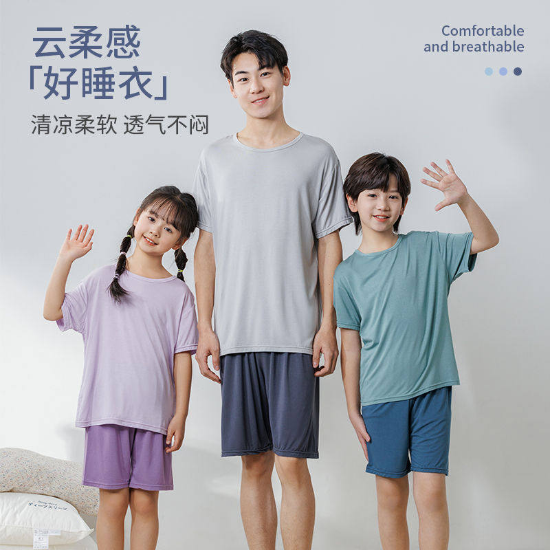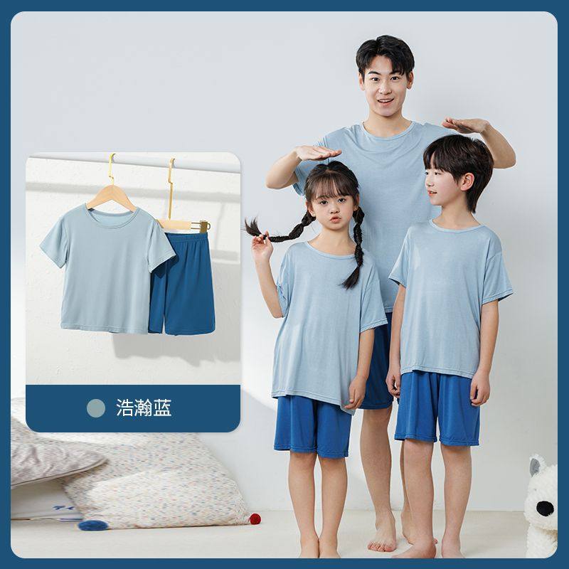 儿童冰丝短袖套装薄款夏季男童中大童家居服空调服睡衣睡裤短裤