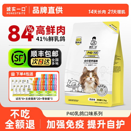诚实一口P40Plus猫粮乳鸽生骨肉冻干全价成猫幼猫高鲜肉官方正品