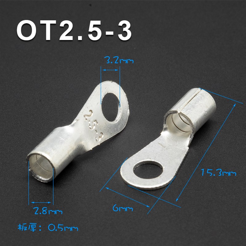OT2.5-3冷压接线端子O型圆形裸端头铜线鼻子镀银接线耳 100只