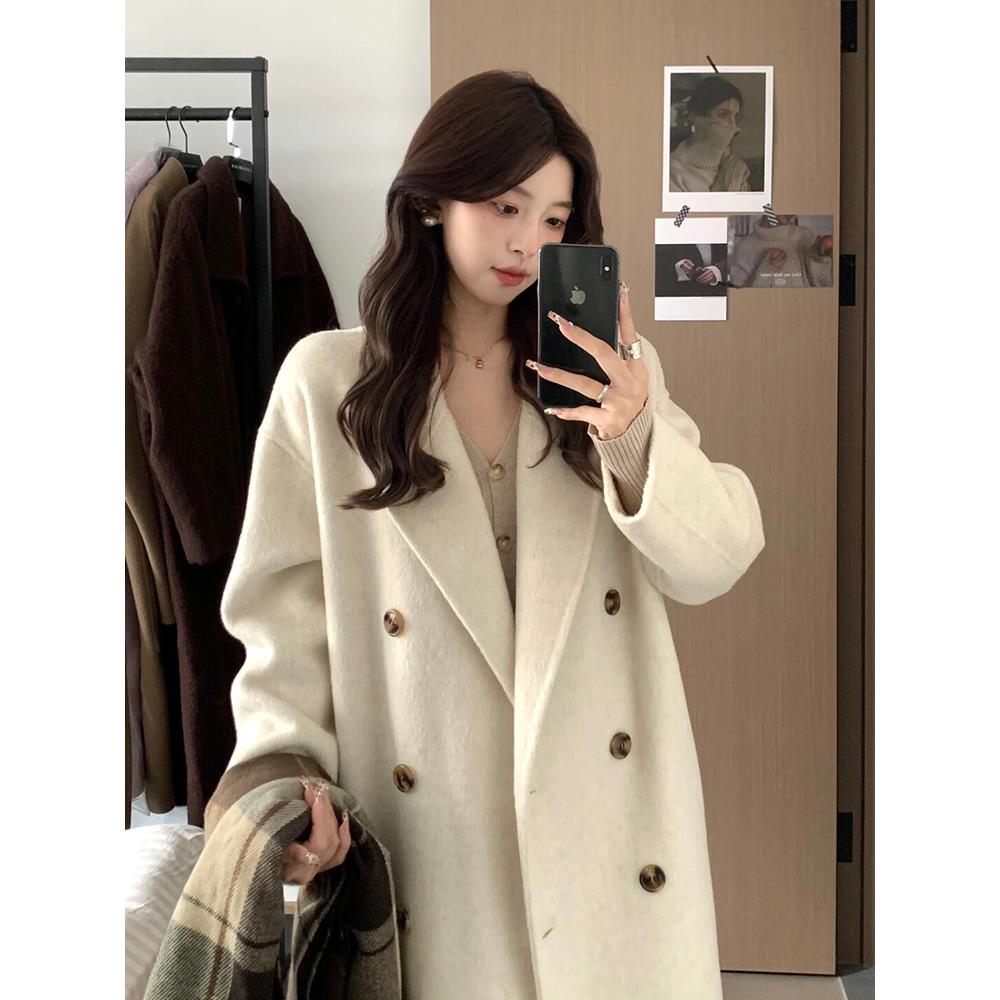 呢子大衣女中长款小个子2024新款秋冬季加厚高级感正肩羊毛呢外套