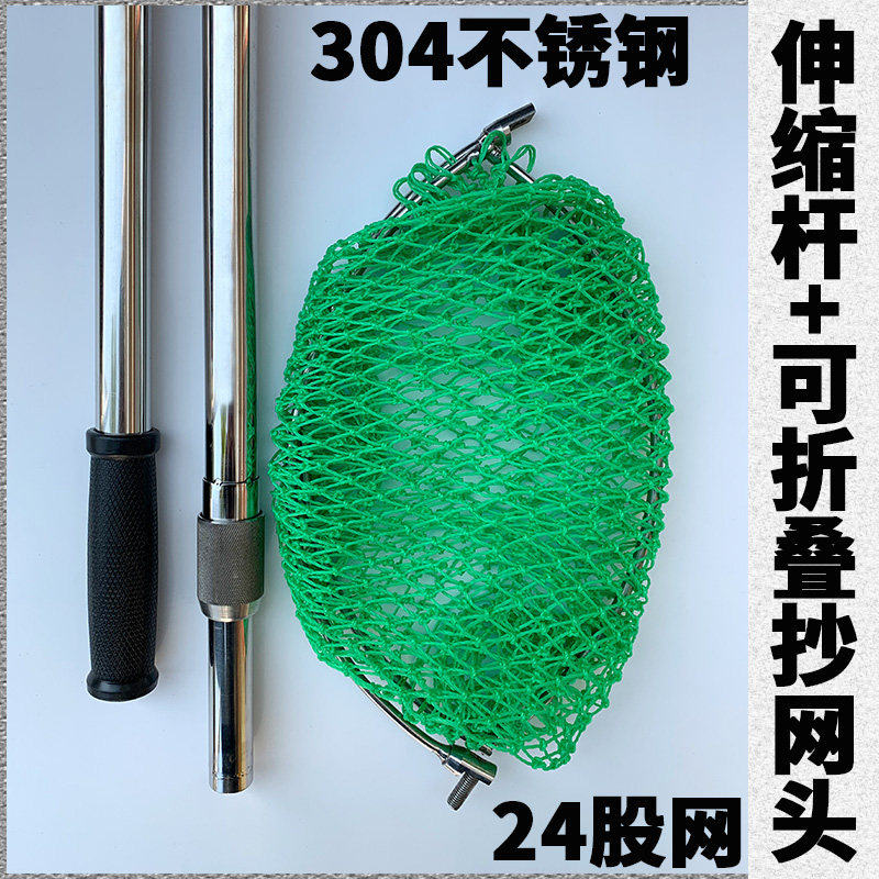 钓鱼抄网网头折叠防挂大物捞鱼网兜抄网圈304不锈钢抓鸡抄网杆