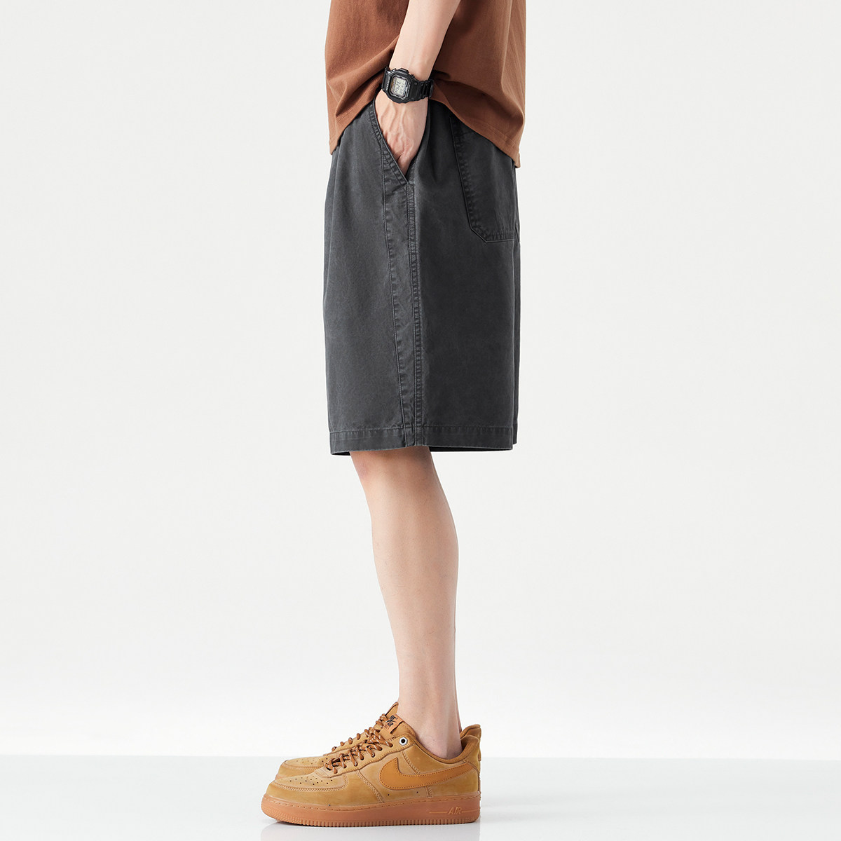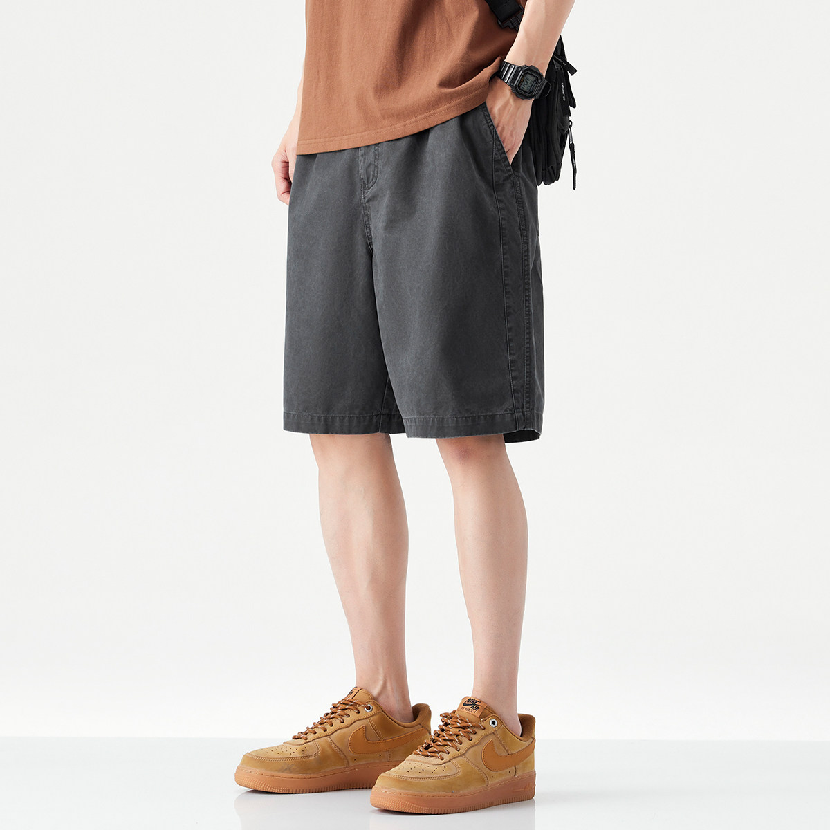 hansca复古酵磨洗褪休闲短裤男2025夏季透气垂感舒适百搭五分裤子