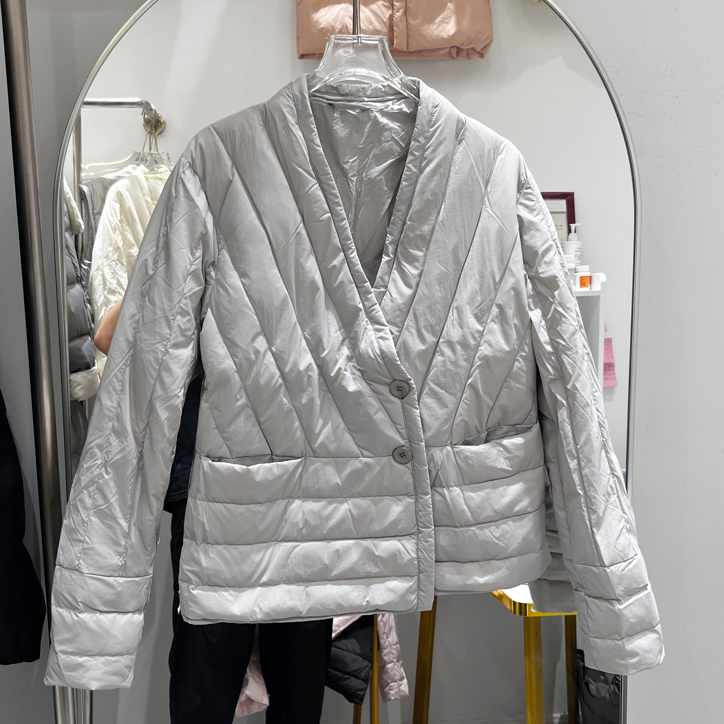 2025秋冬新款 新国标90白鸭绒女士短款V领轻薄羽绒服长袖羽绒内胆