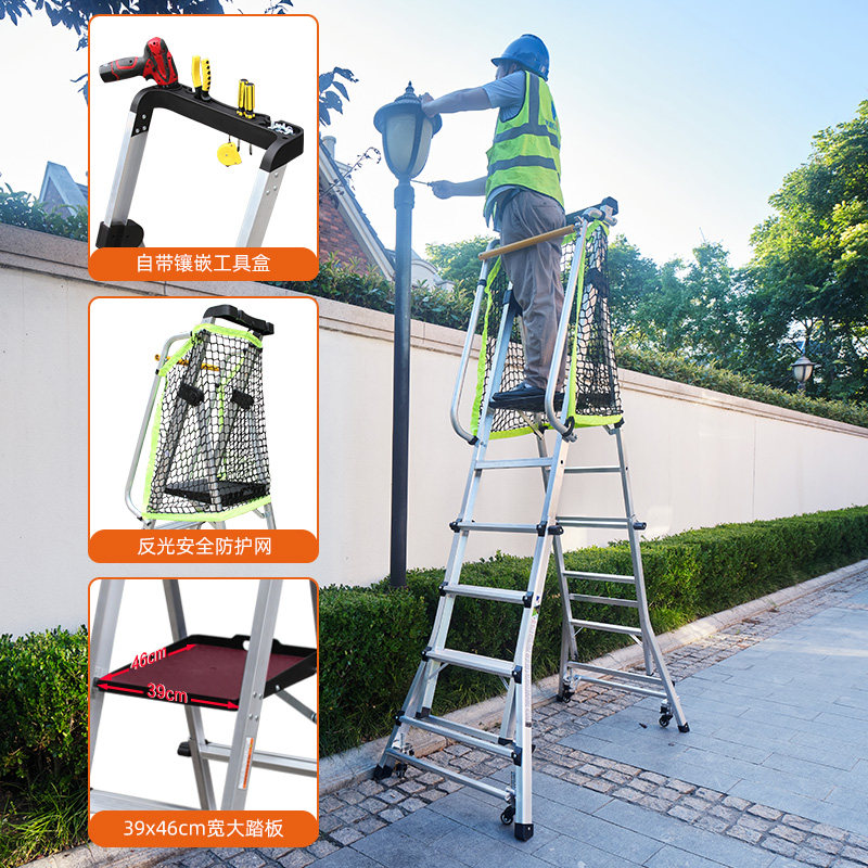 瑞居铝合金围栏安全平台梯移动仓储工程梯折叠伸缩高空作业人字梯