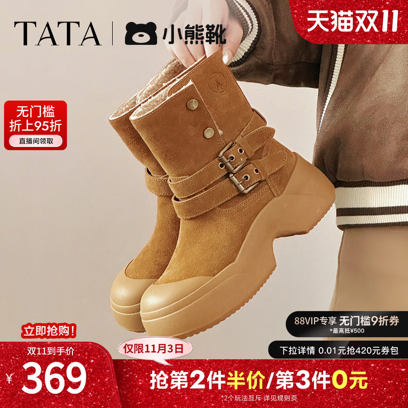 TATA他她加绒厚底小熊靴雪地靴女靴子保暖棉鞋马丁靴冬季CX501DZ4