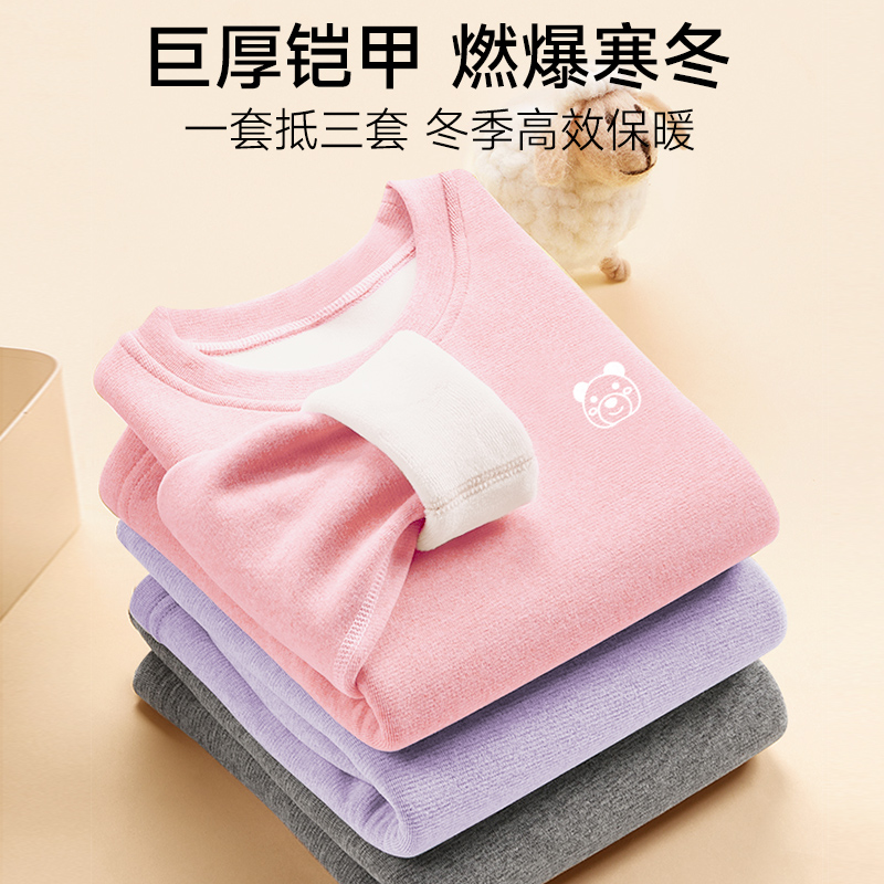 猫人女童保暖内衣套装儿童加绒加厚2025新款男童秋衣秋裤女孩冬季