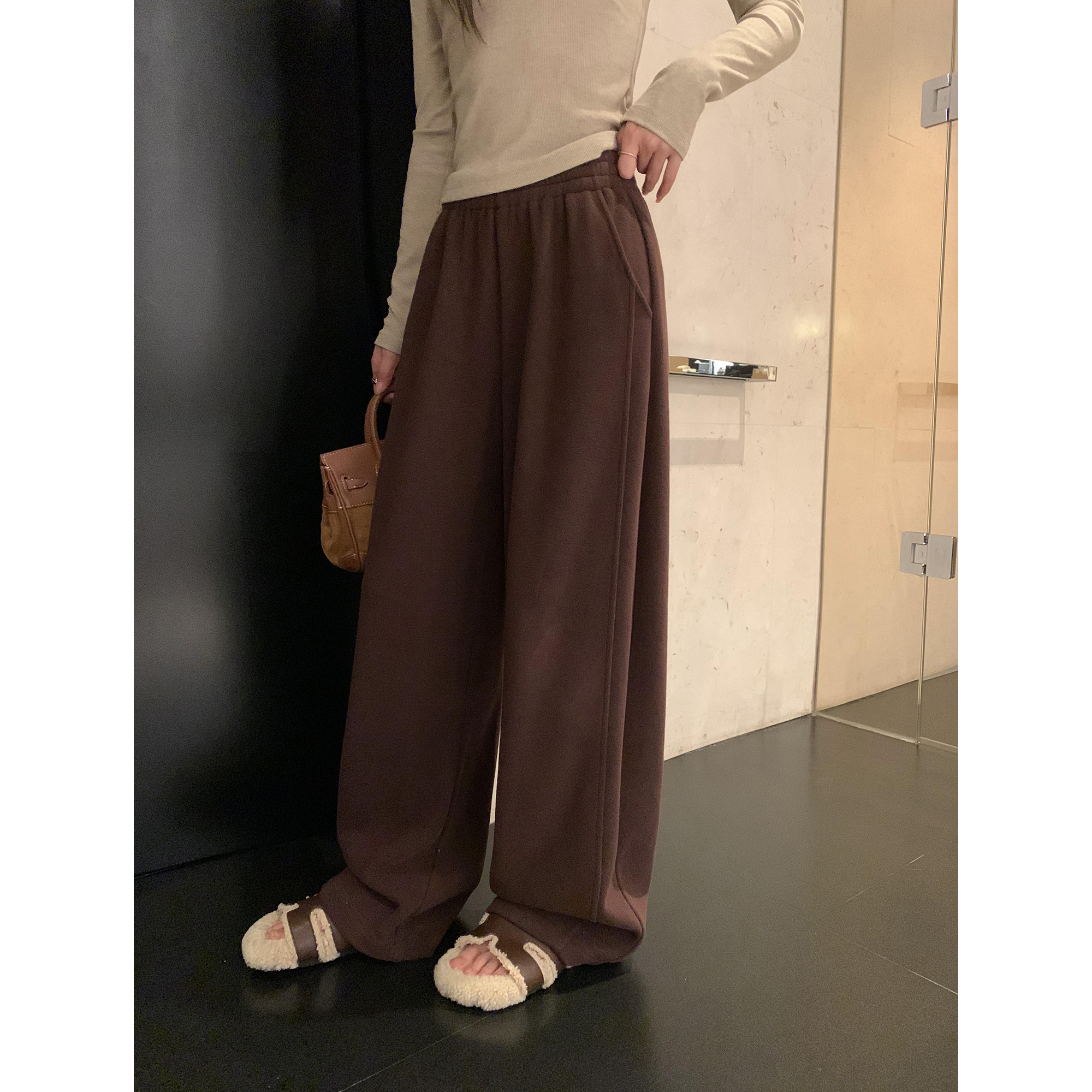 pusumede 舒适随行 休闲运动针织卫裤女加绒香蕉裤宽松阔腿镰刀裤