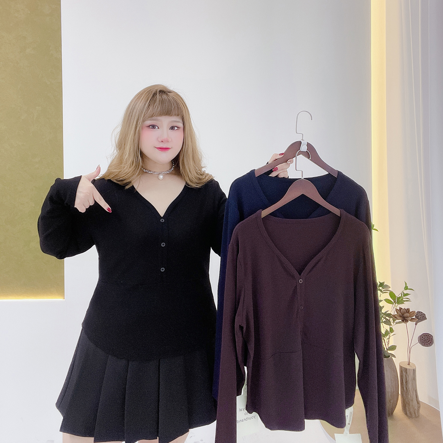 300斤胖莹莹大码女装V领简约弹力修身洋气内搭收腰长袖T恤打底衫