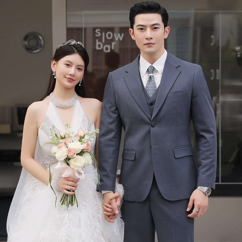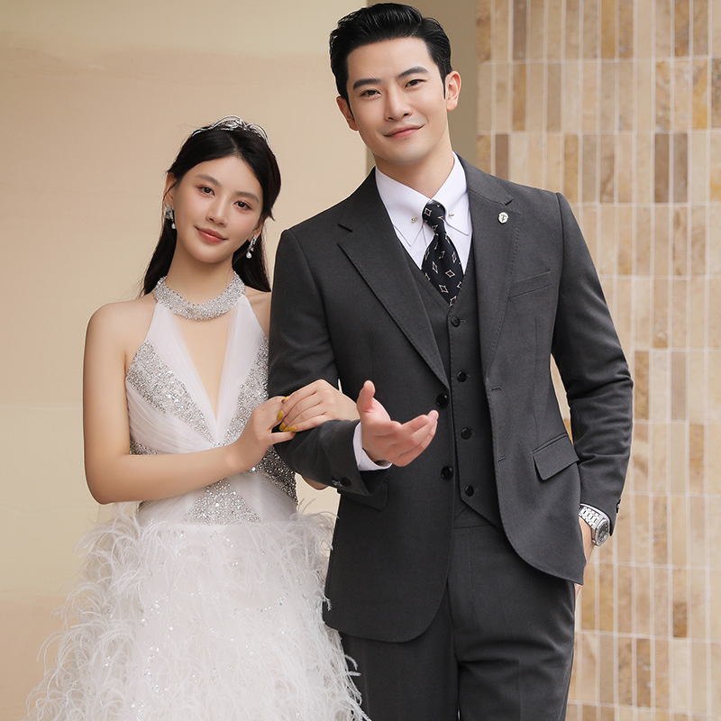皮尔卡丹高档羊毛正装男两粒扣商务天丝西服修身大码新郎结婚礼服