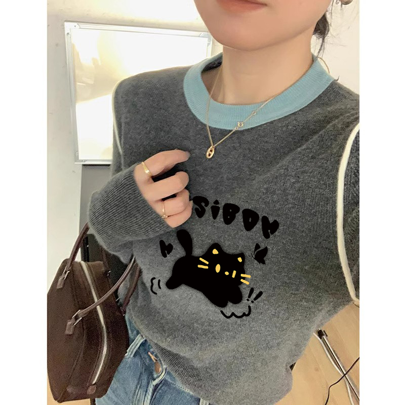 正肩针织长袖t恤上衣ins超火小众不撞款修身撞色打底衫女款秋冬装