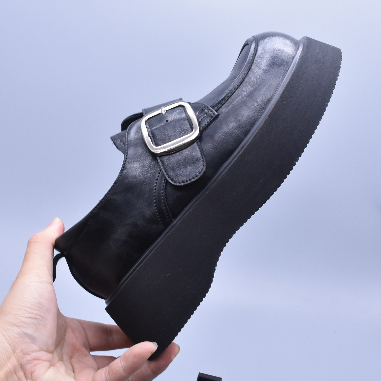 秋季百搭厚底单鞋软软的复古圆头小皮鞋英伦风魔术贴休闲乐福鞋潮