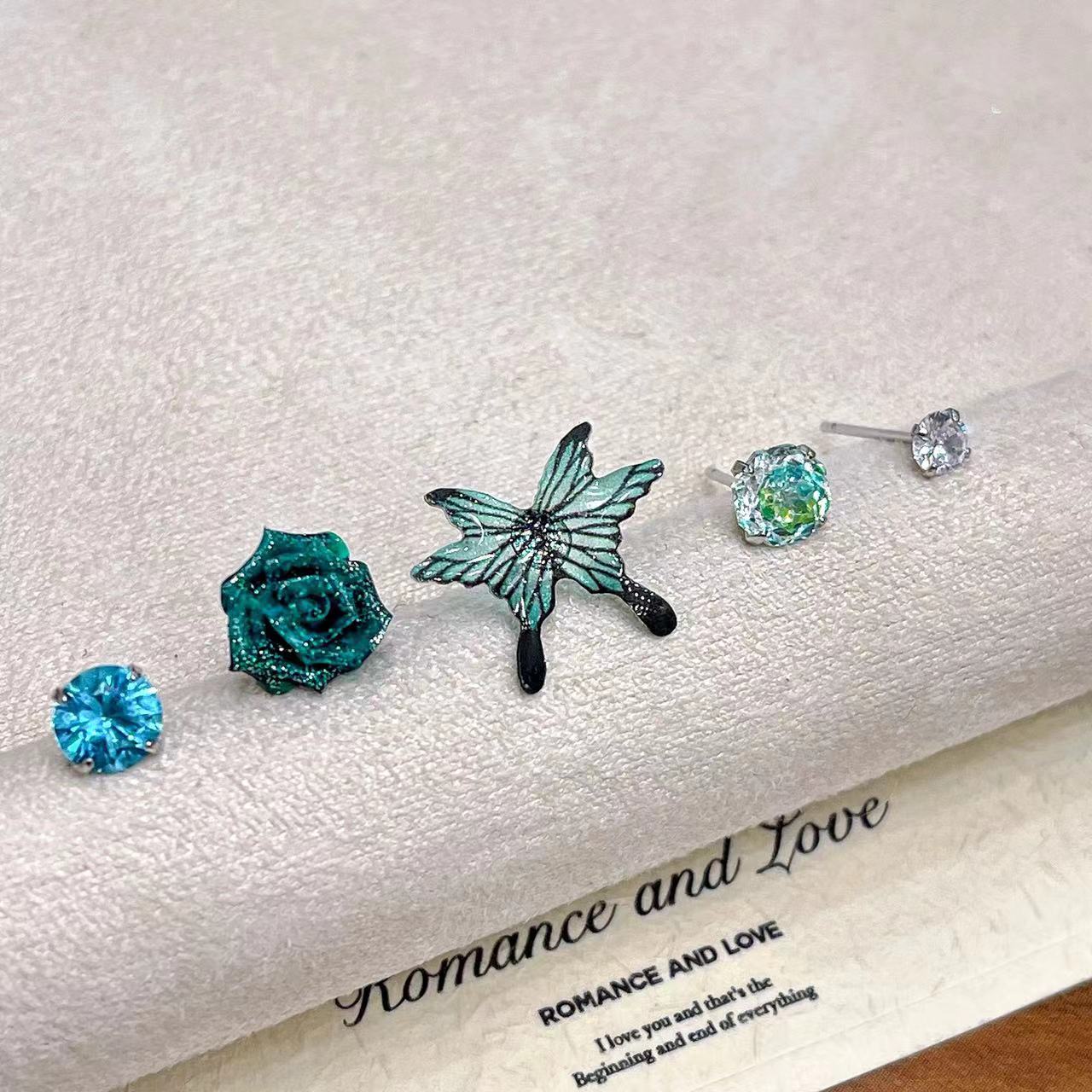 甜美气质花朵蝴蝶水钻不对称耳钉小清新森系田园风简约耳环耳饰女